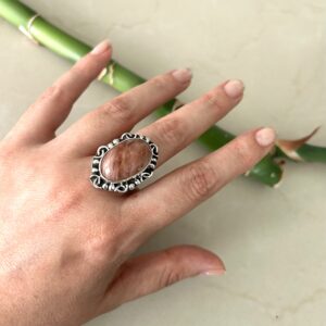 Anillo con puntas Cuarzo rosa y Luna