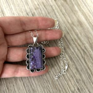 Collar con dije de Charoita con diseño ( cadena 50 cm)