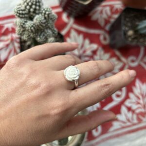 Anillo con Rosa tallada en Madre Perla