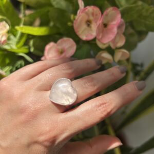 Anillo Corazon de Cuarzo Rosa