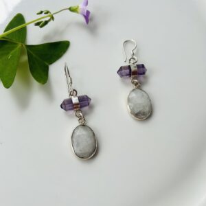 Aretes puntas de Amatista y Piedra Luna facetada