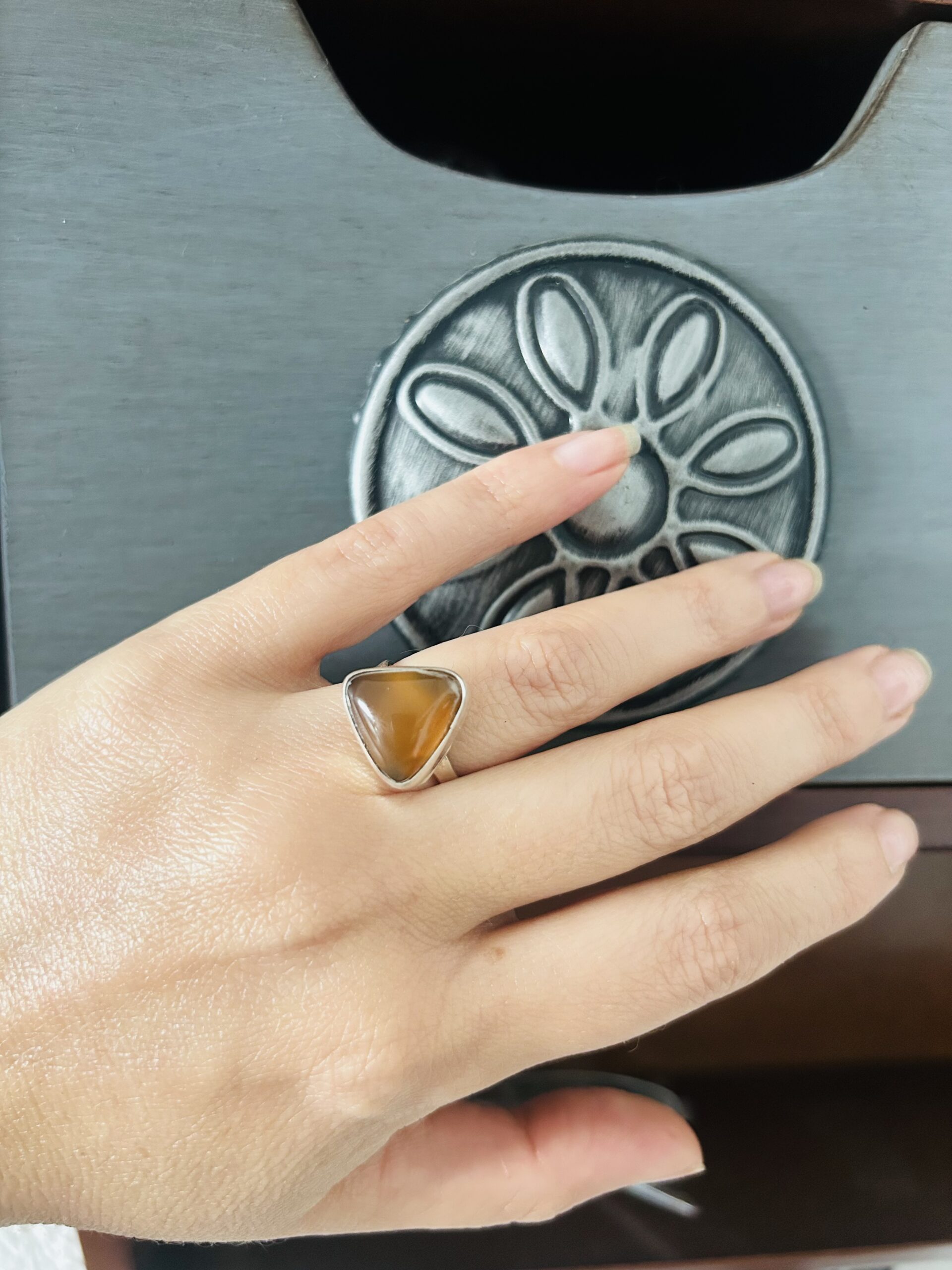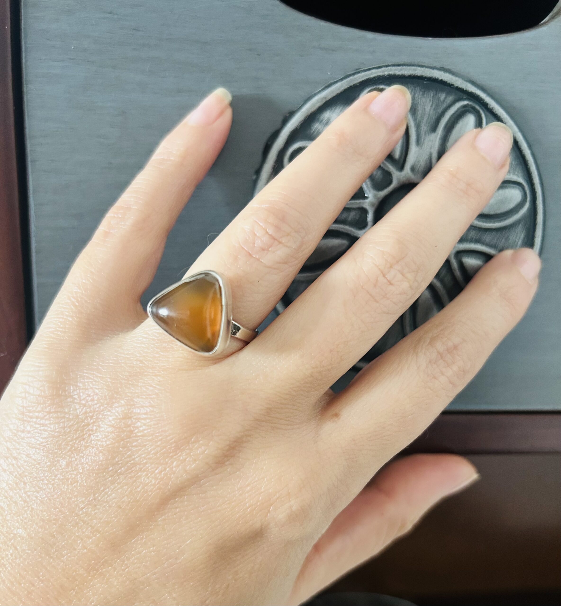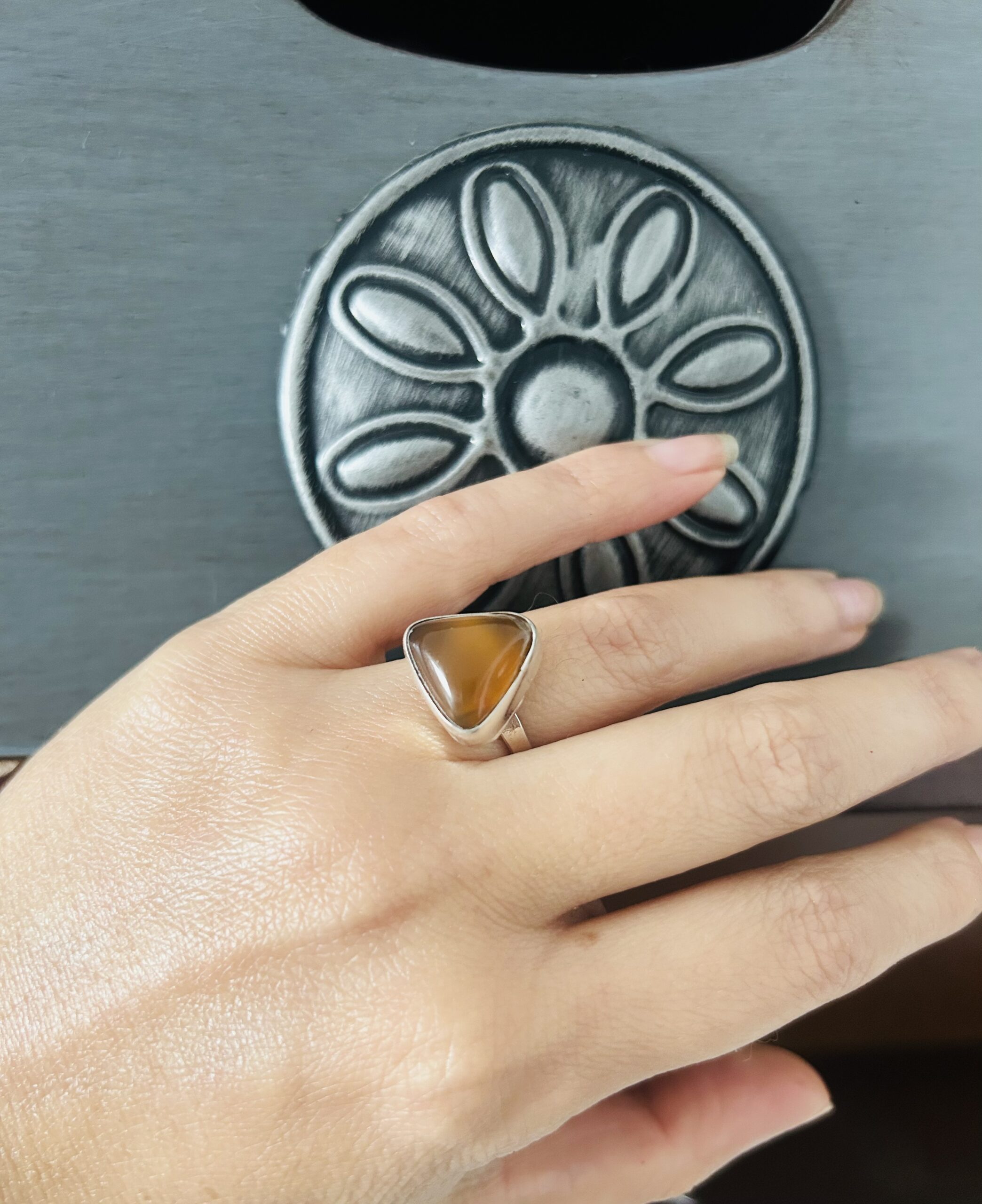 Anillo con Cornalina, de Plata950, ajustable en medida