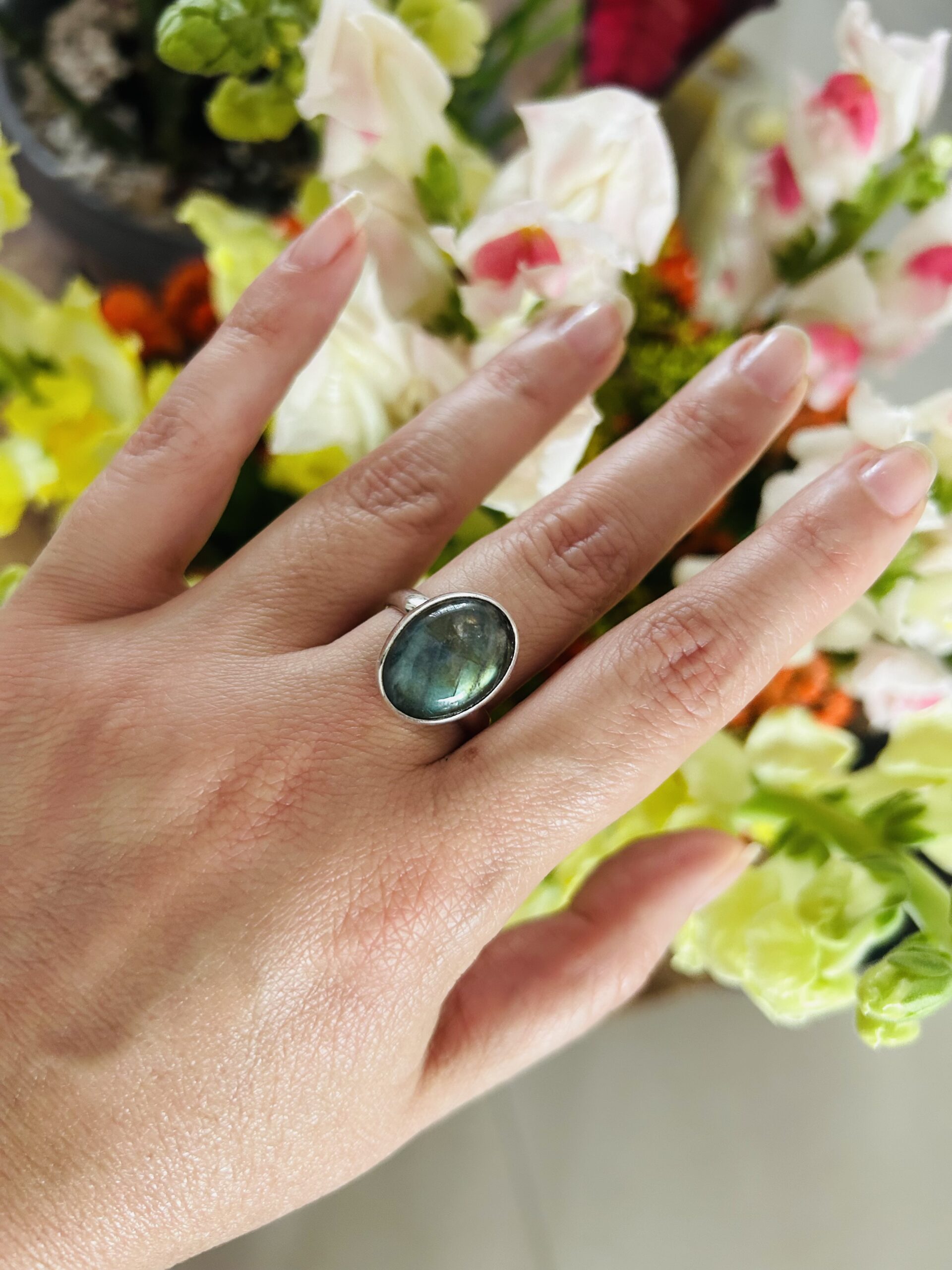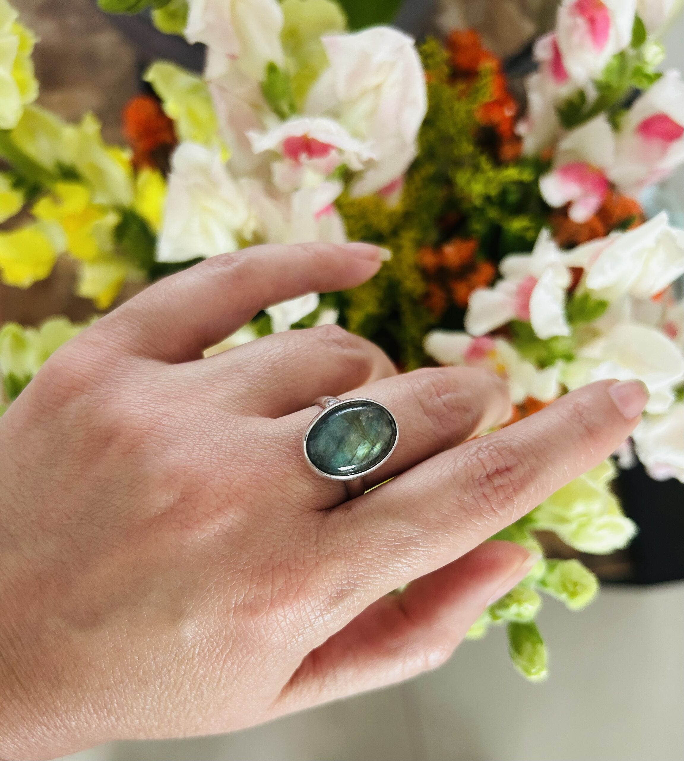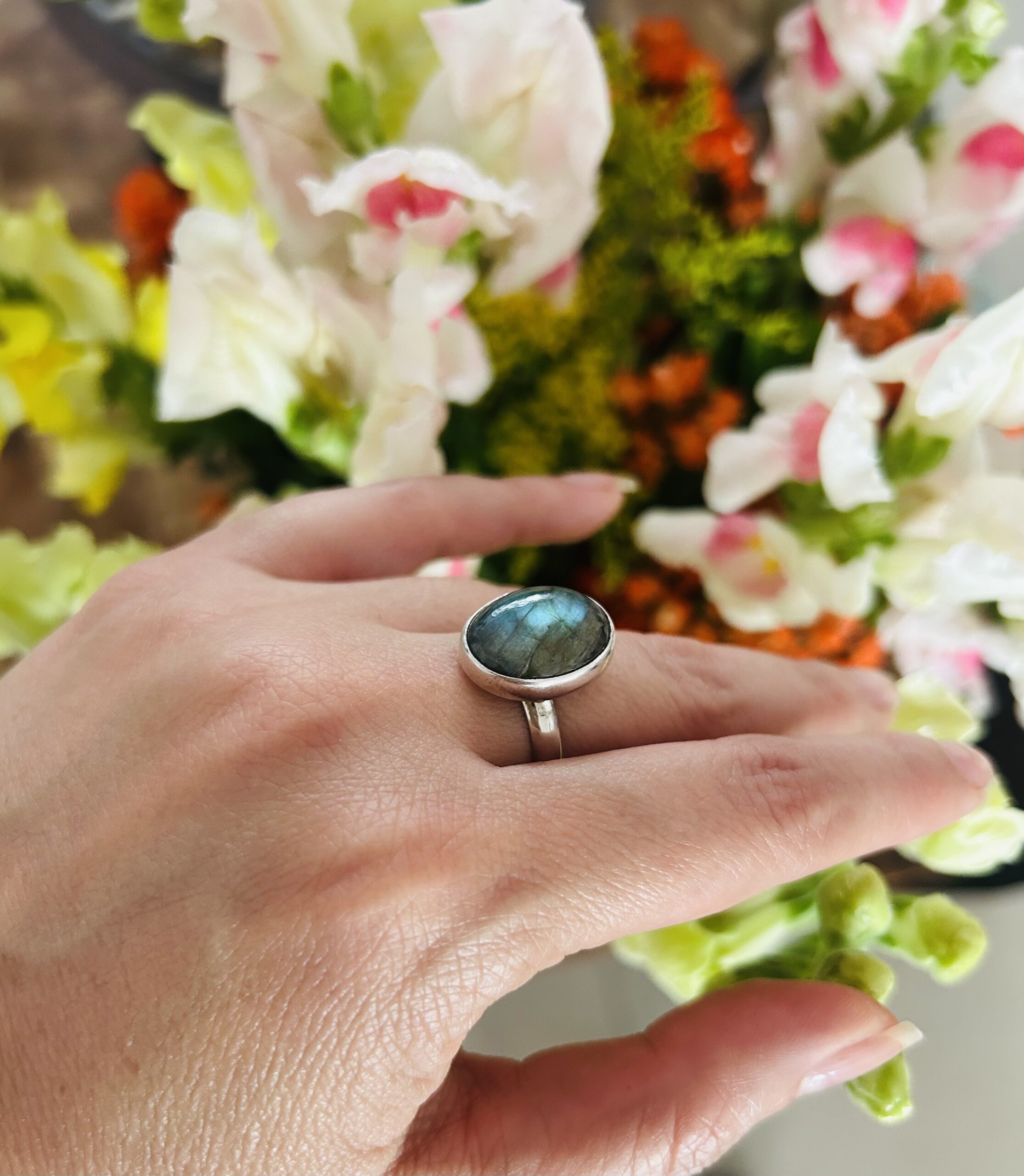 Anillo con Labradorita, de Plata925, ajustable en medida