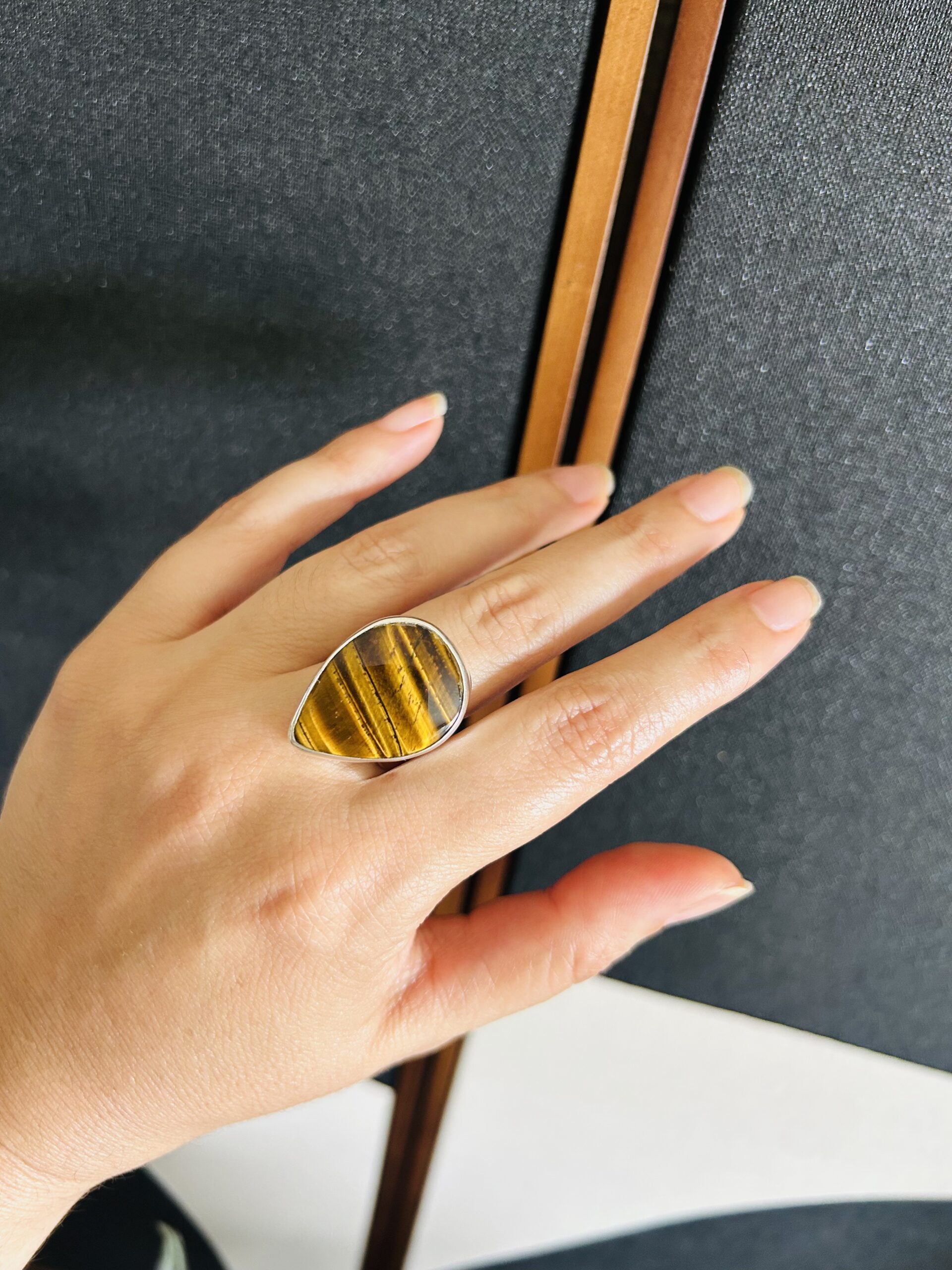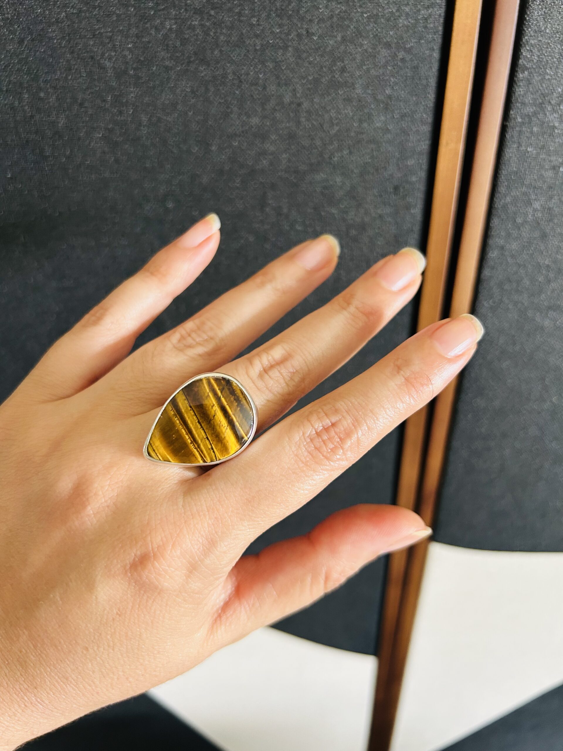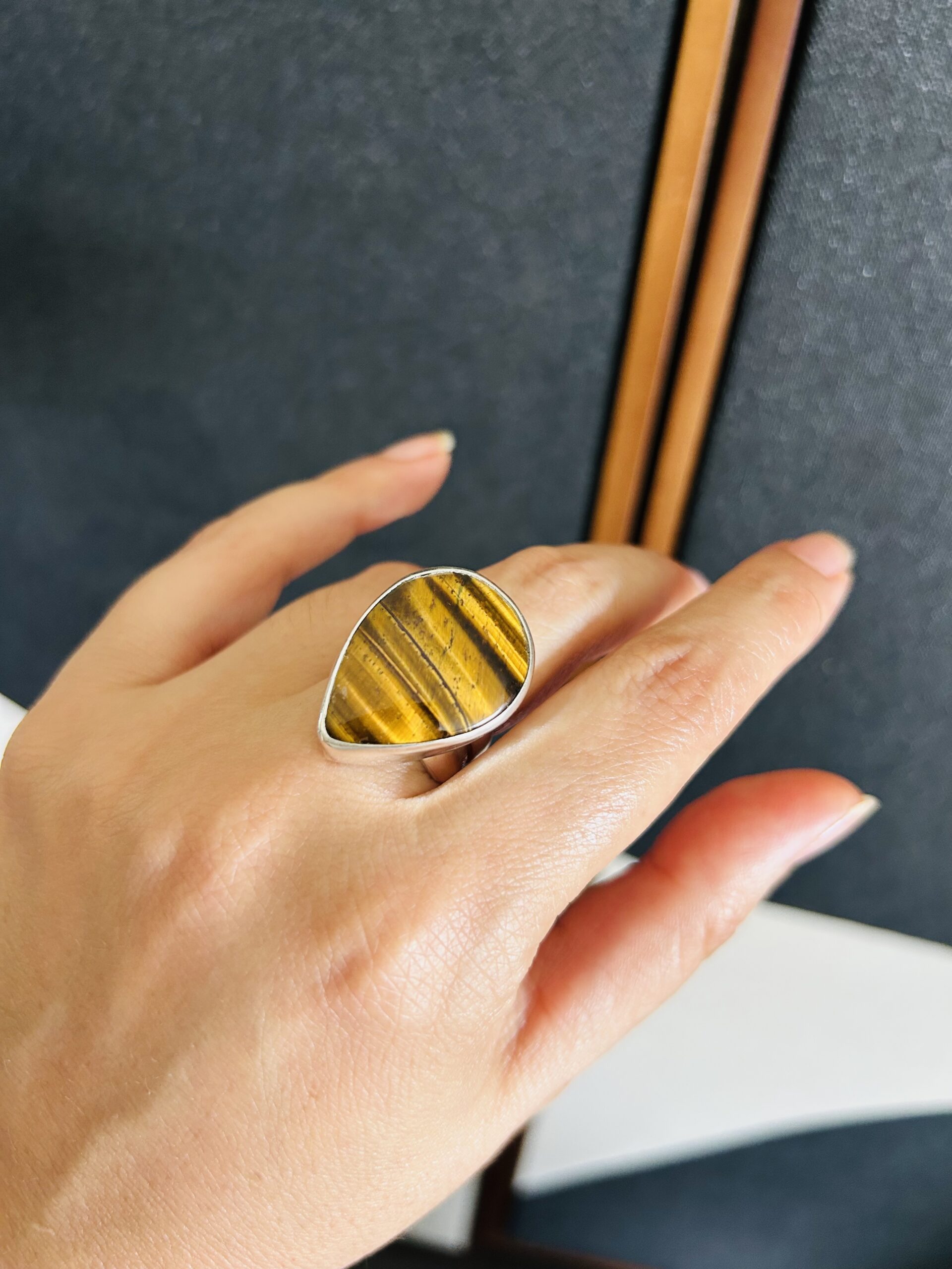 Anillo con Ojo de Tigre, de plata925, ajustable en medida