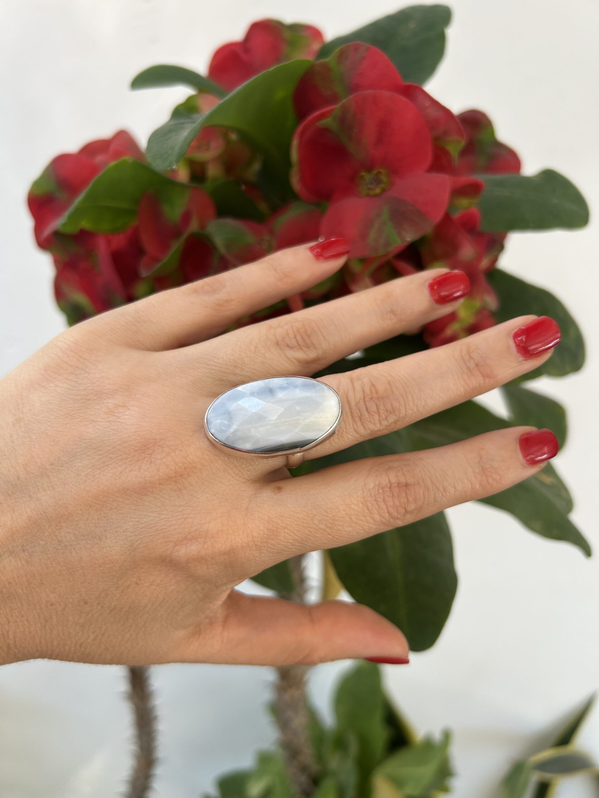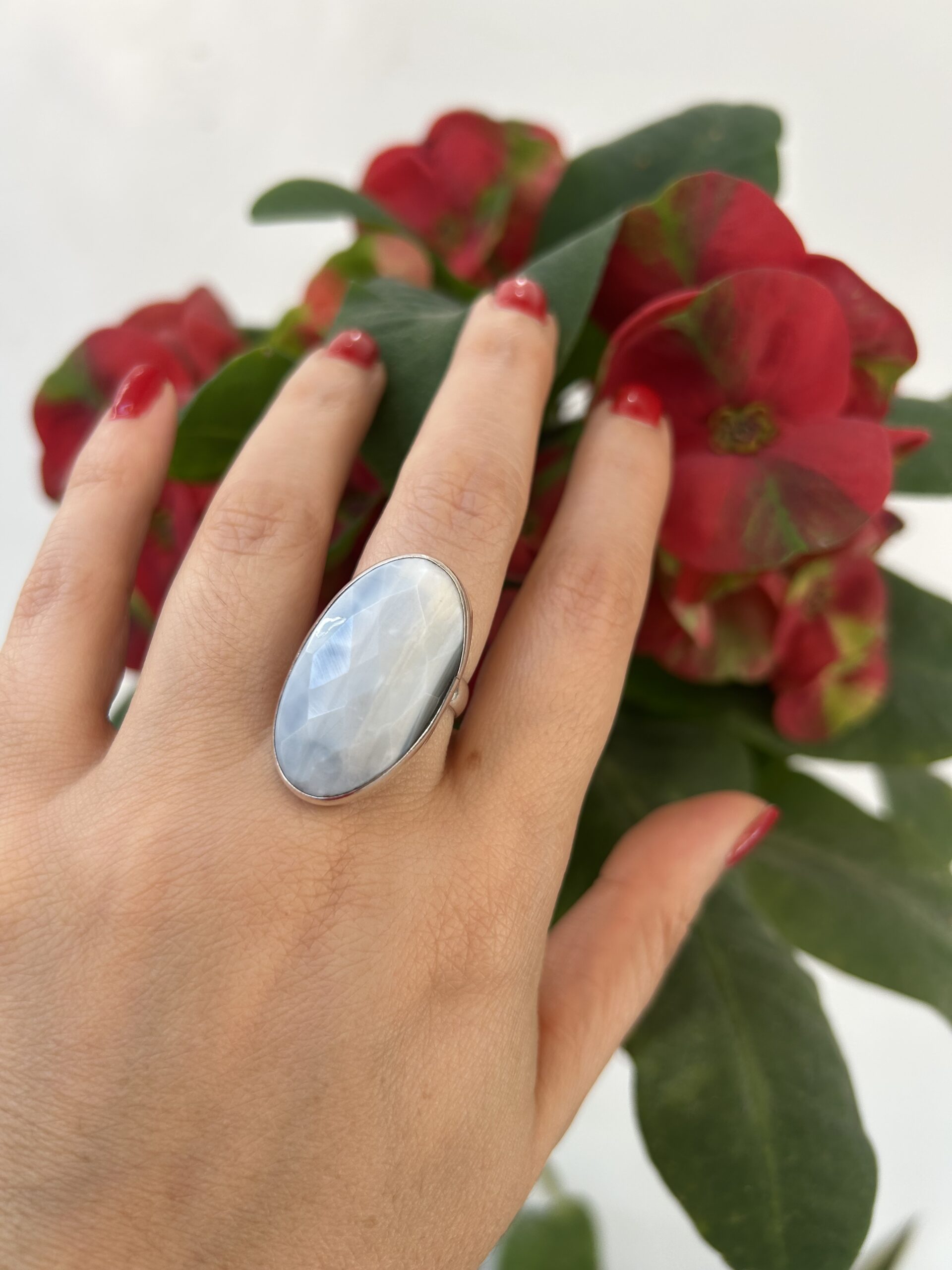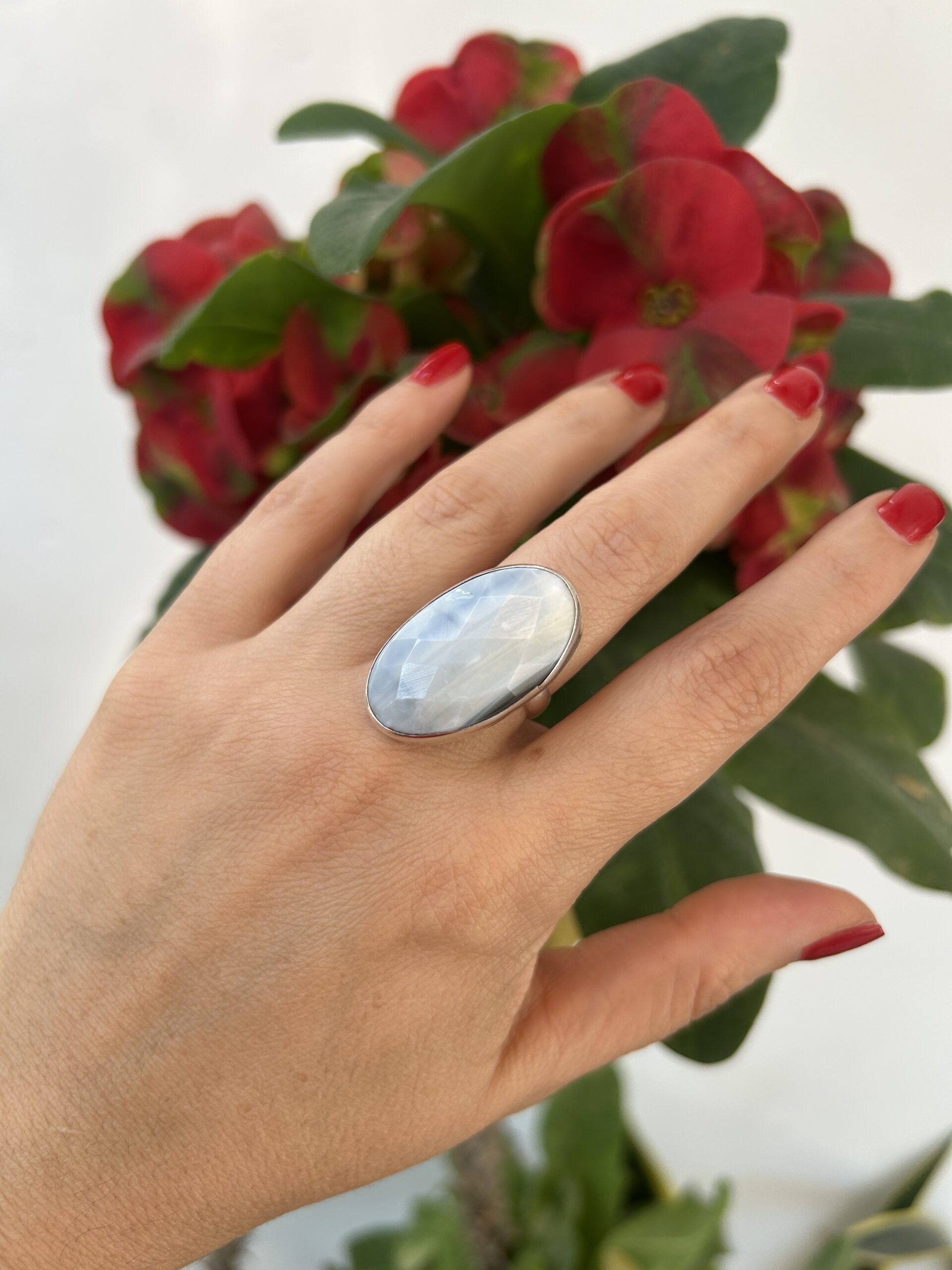 Anillo con Opalo Azul Facetado, de Plata925, ajustable en medida