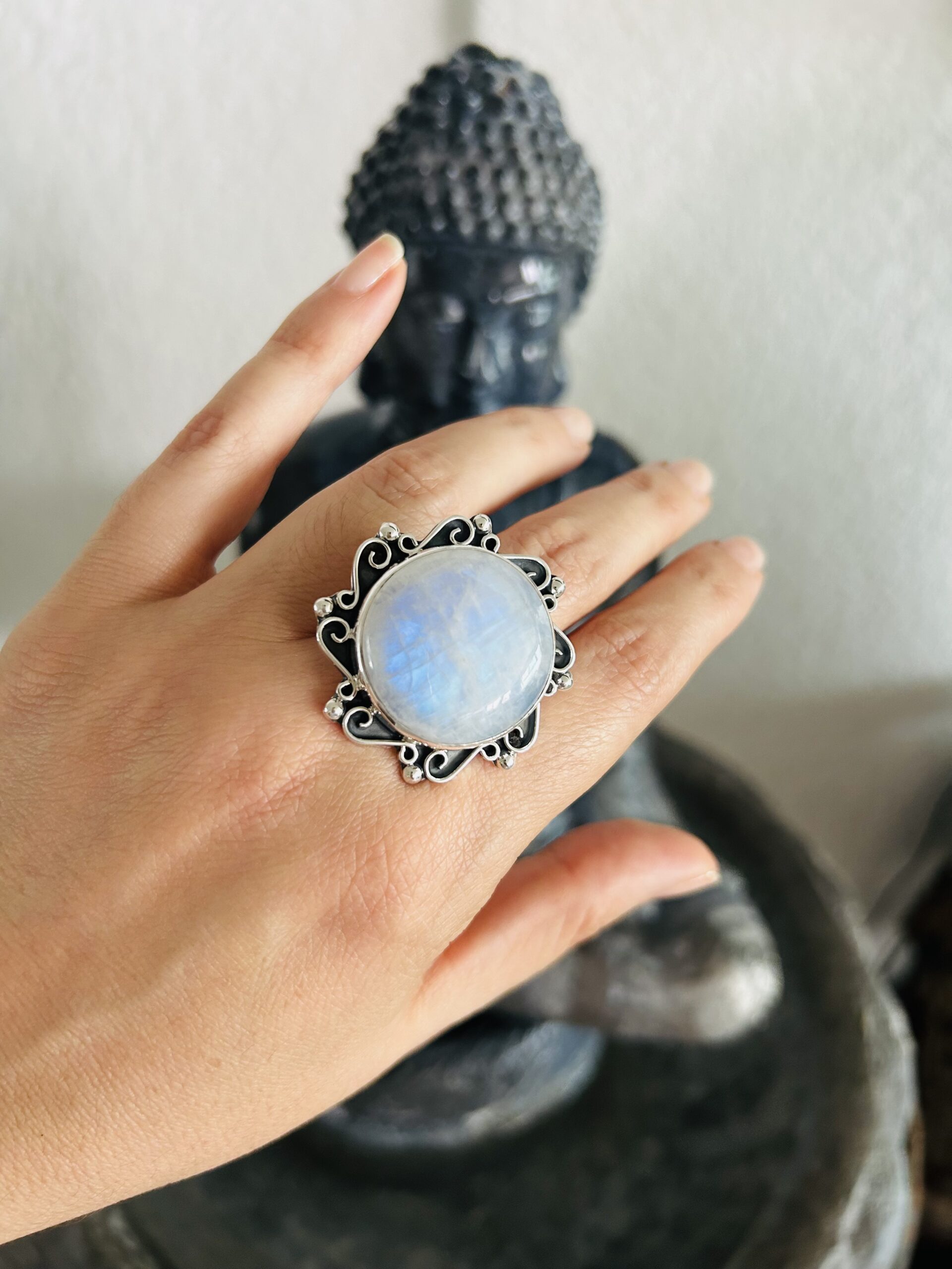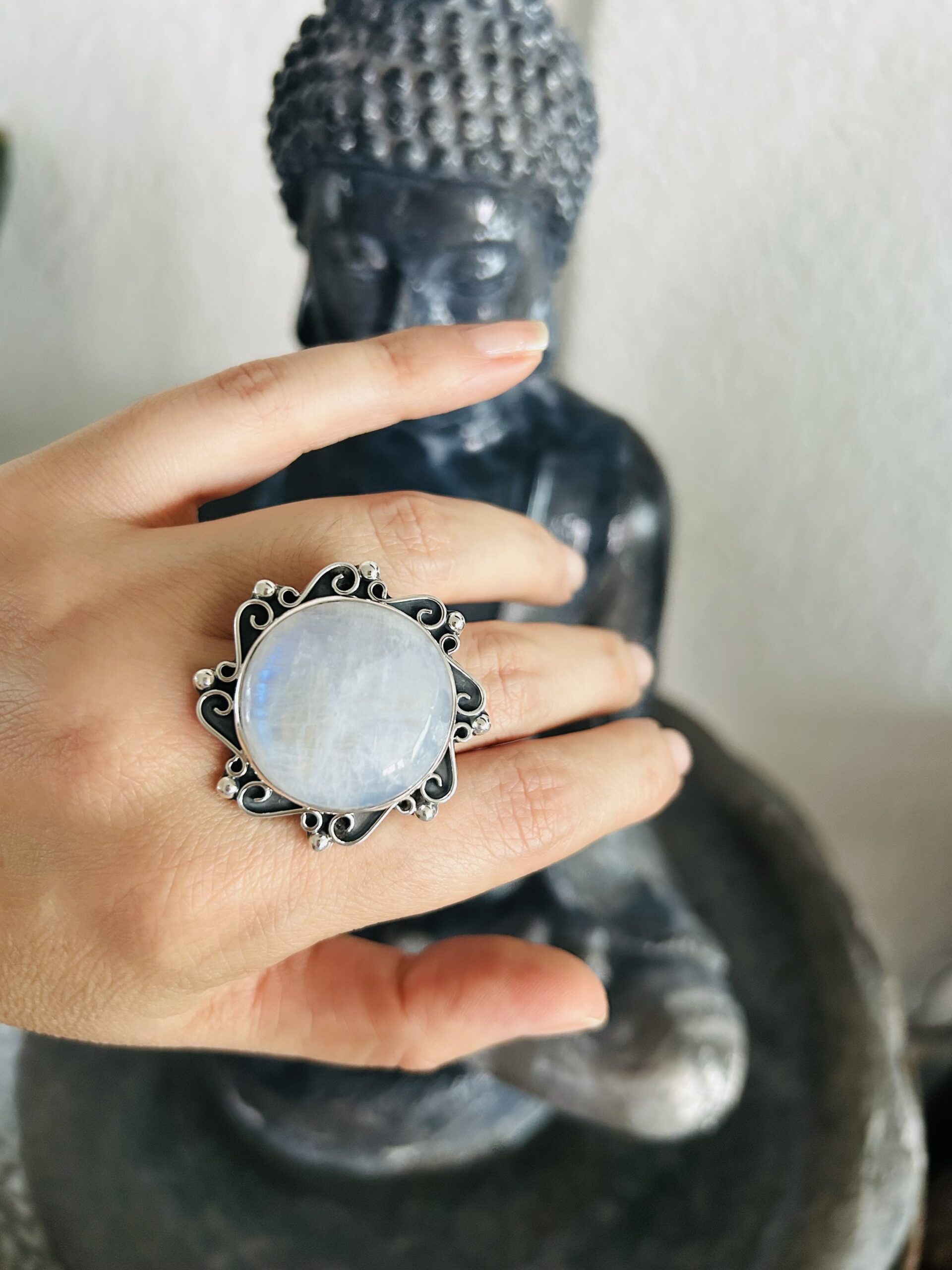 Anillo con PiedraLuna PREMIUM (aro ancho)