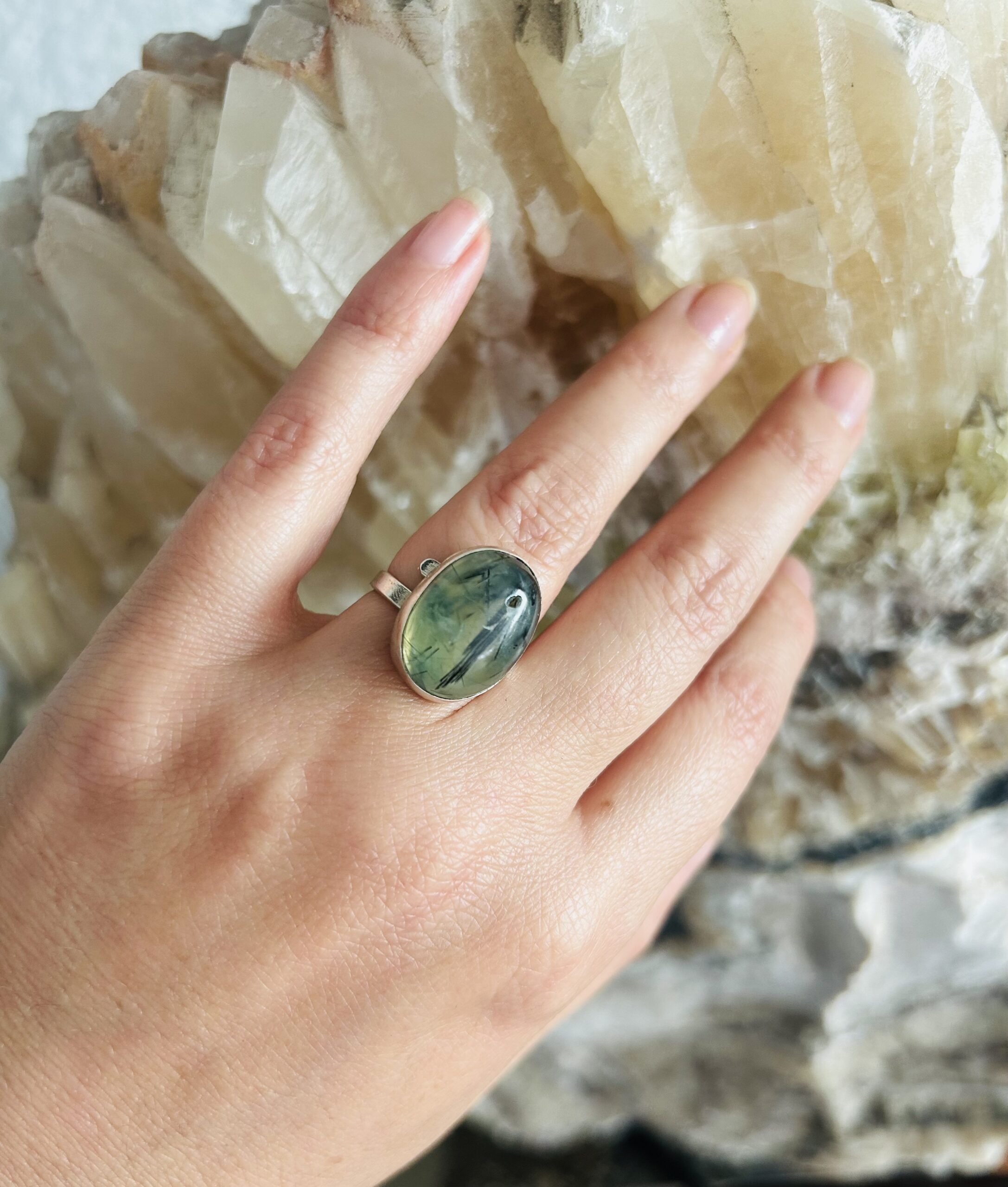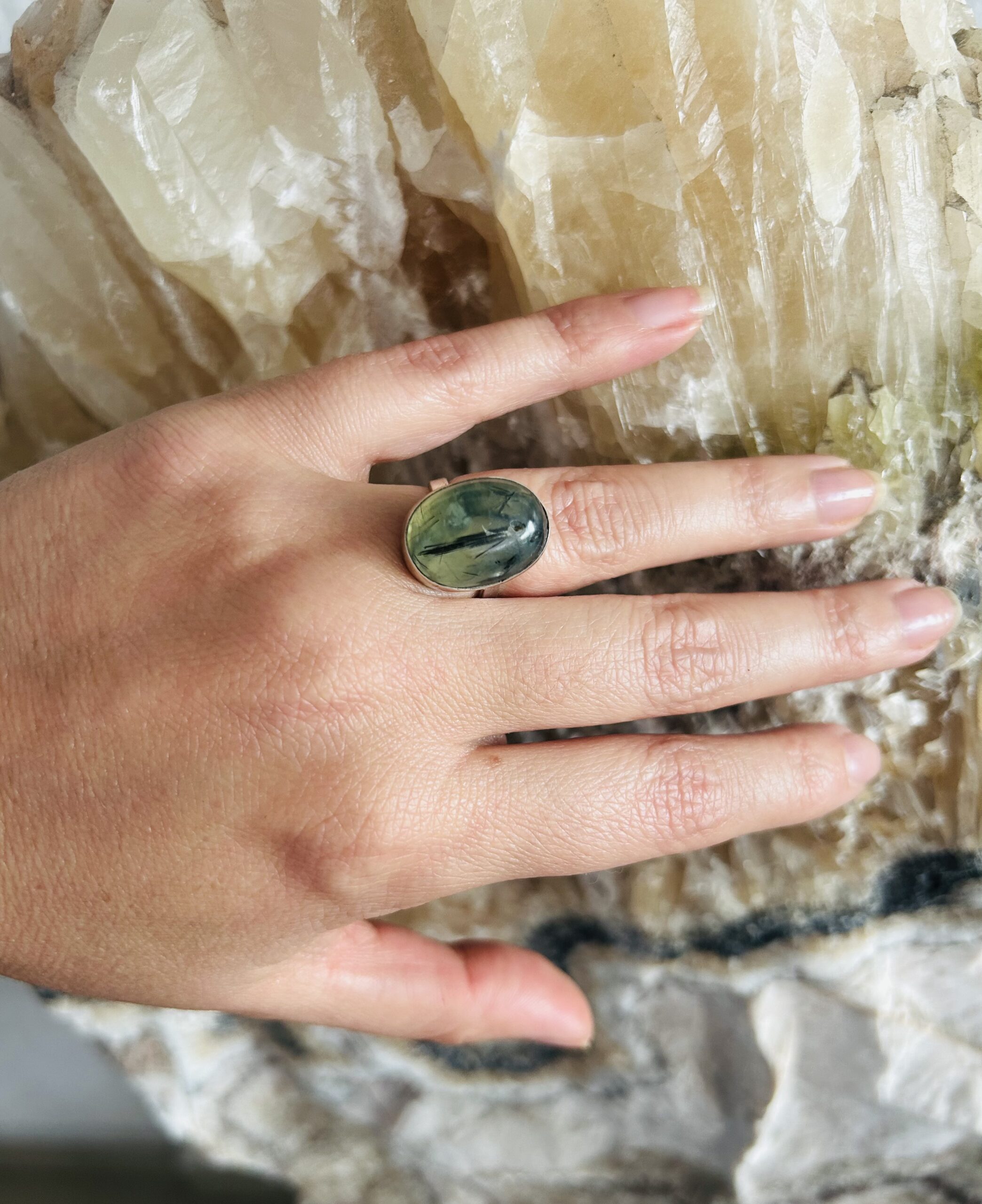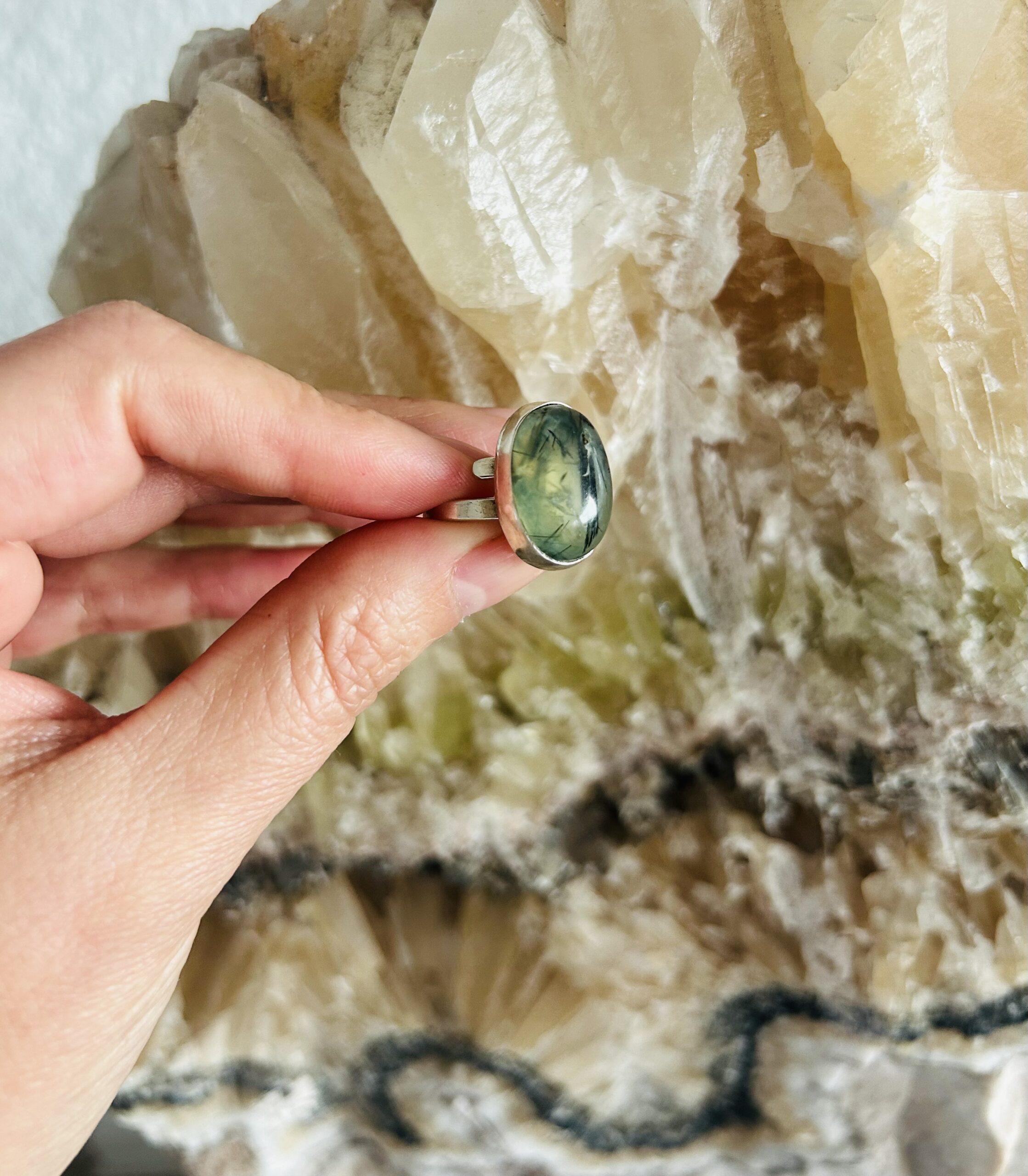 Anillo con Prehnita, de Plata925, ajustable en medida