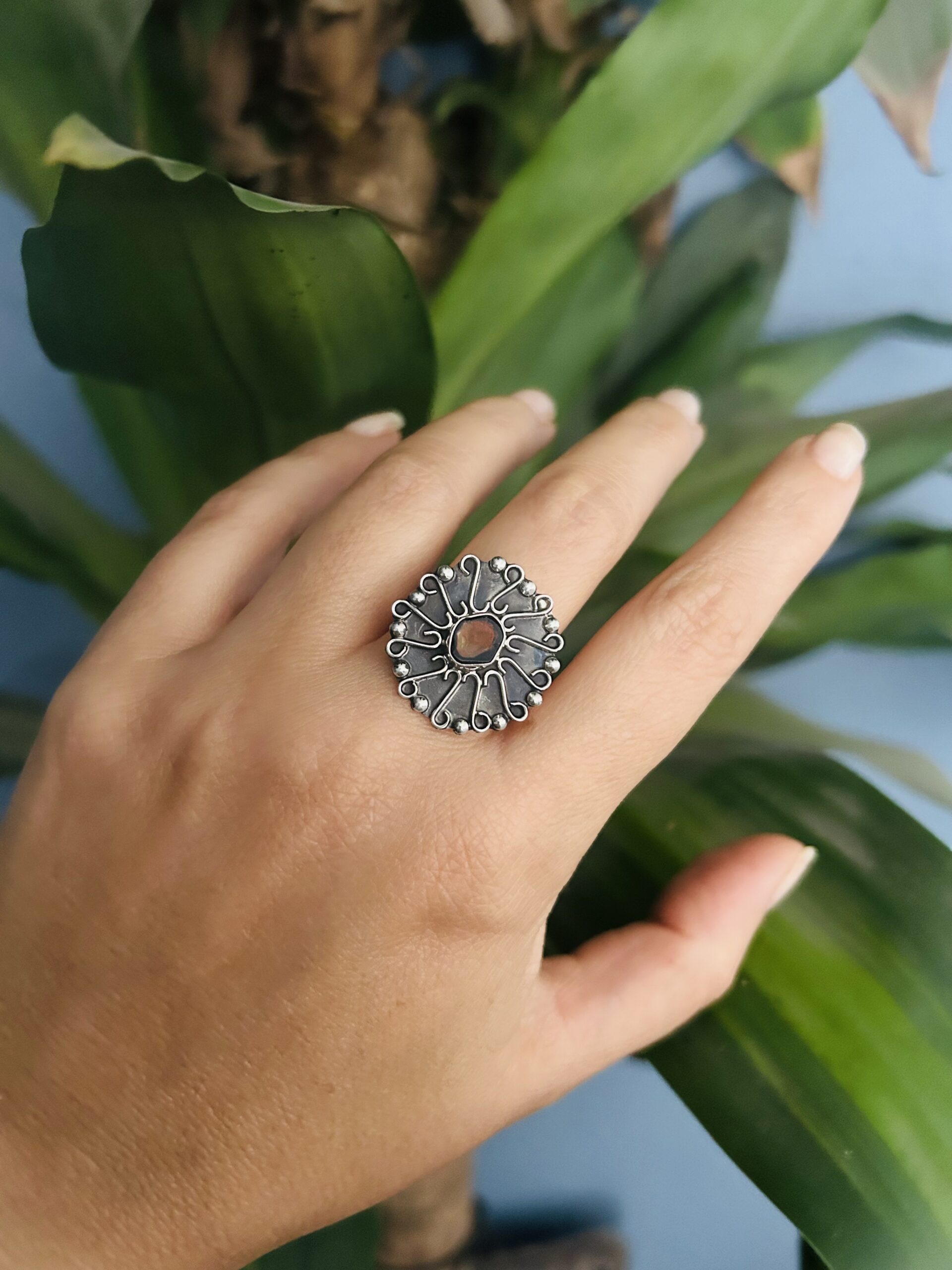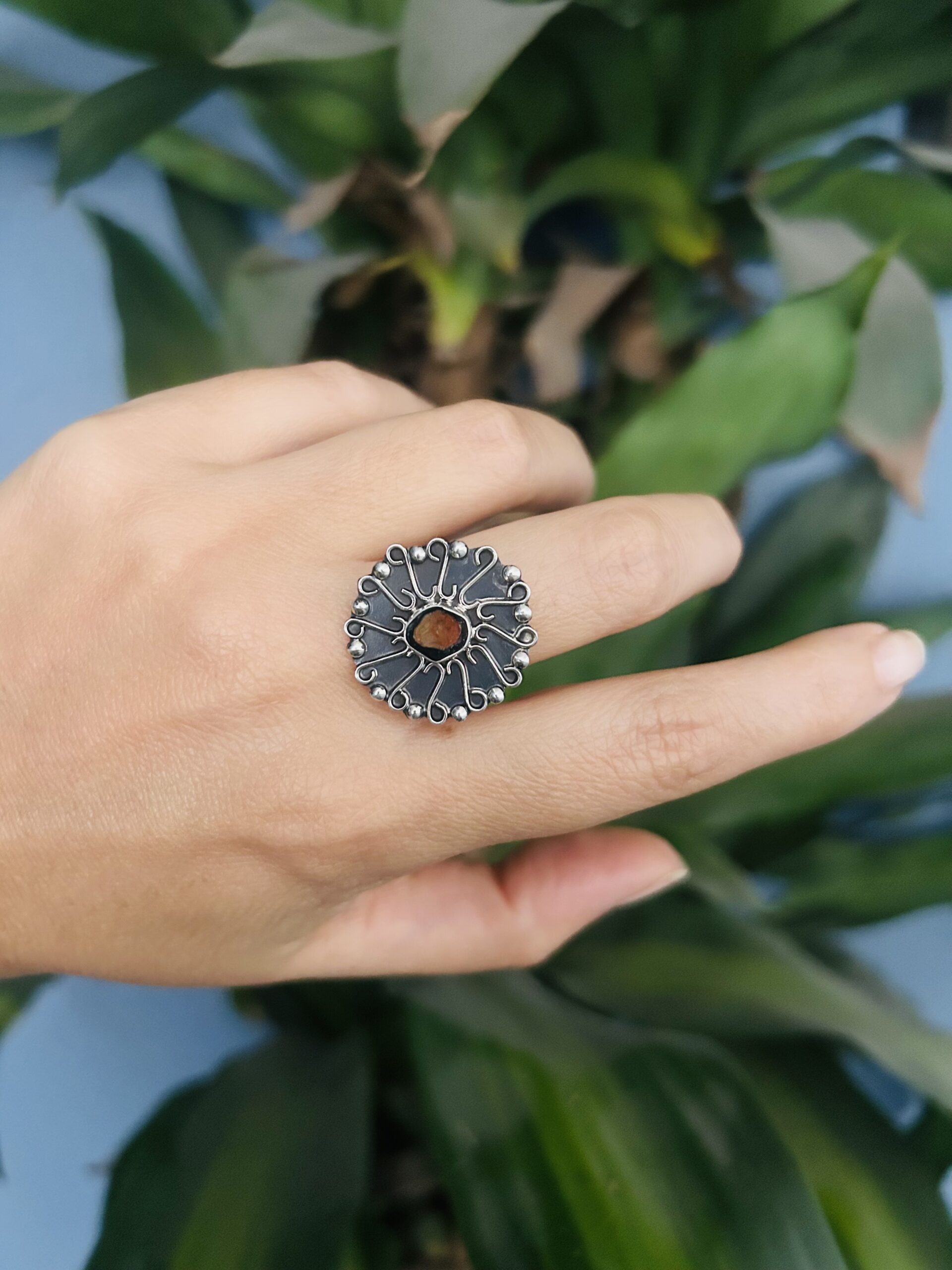 Anillo de Turmalina Sandia con diseño,, ajustable en medida PLATA925.