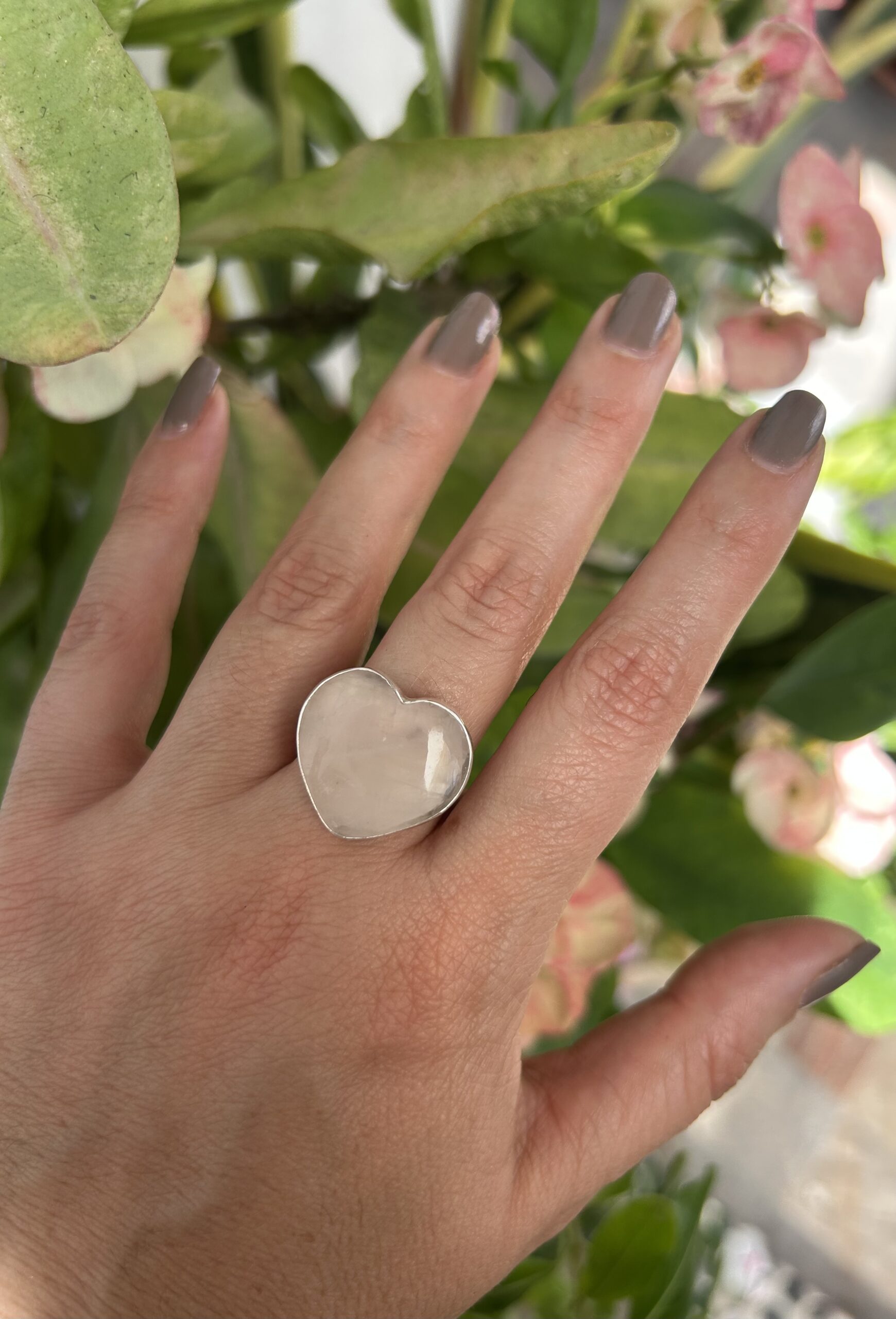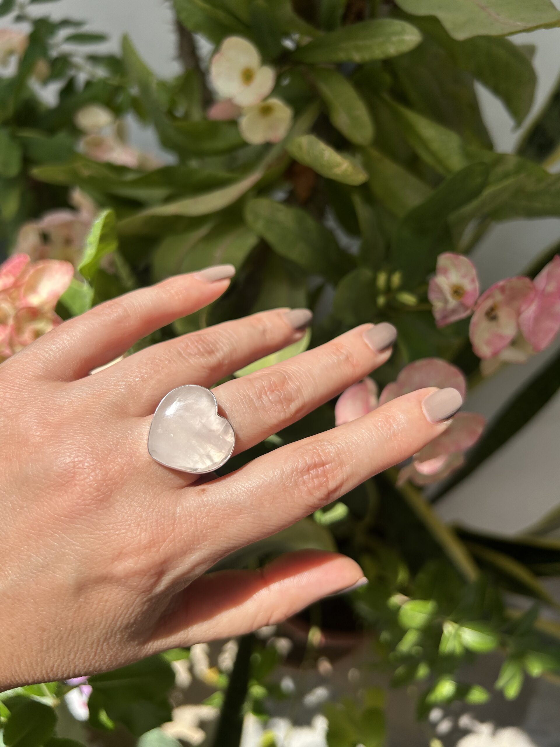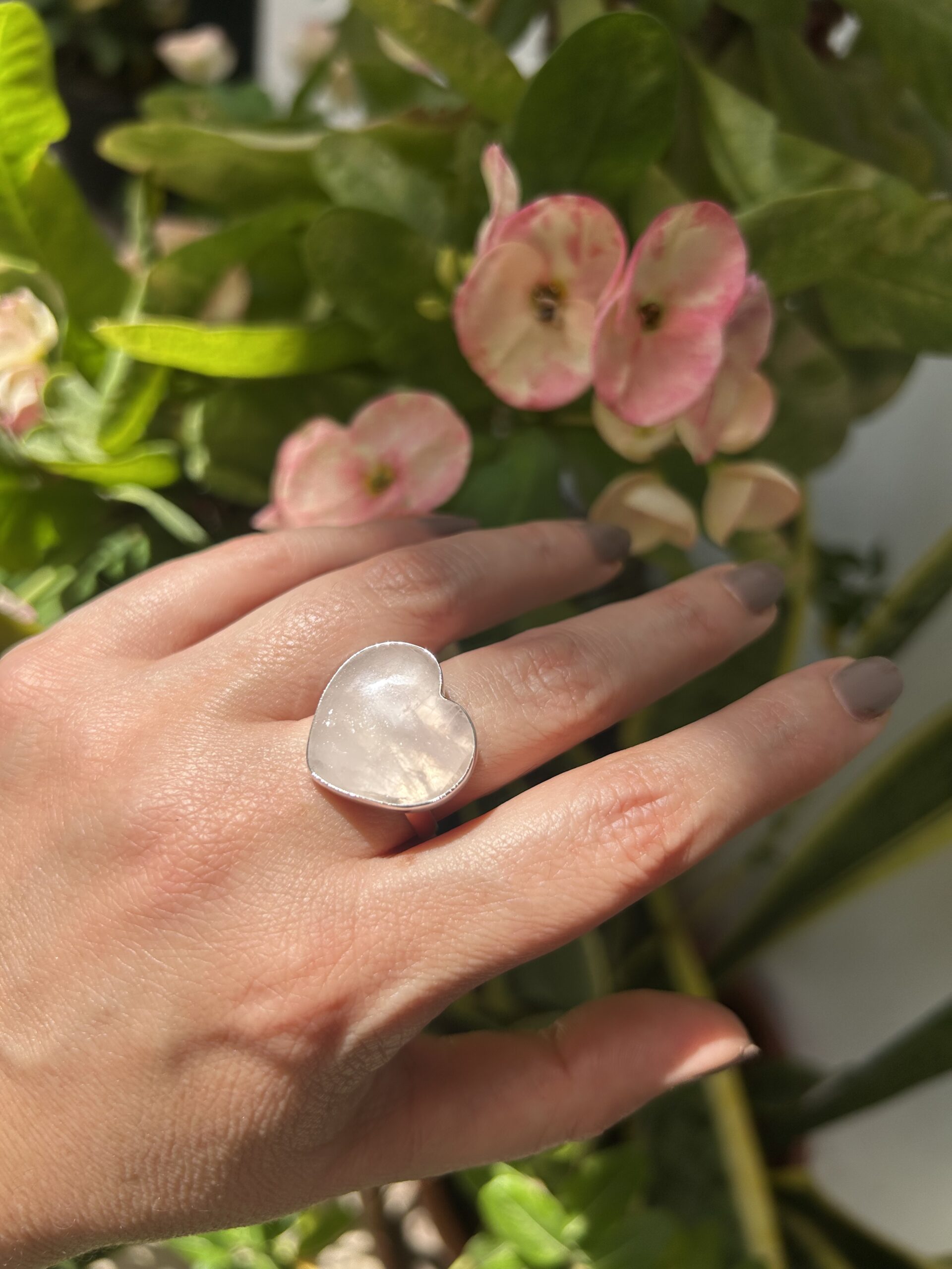 Anillo Corazon de Cuarzo Rosa