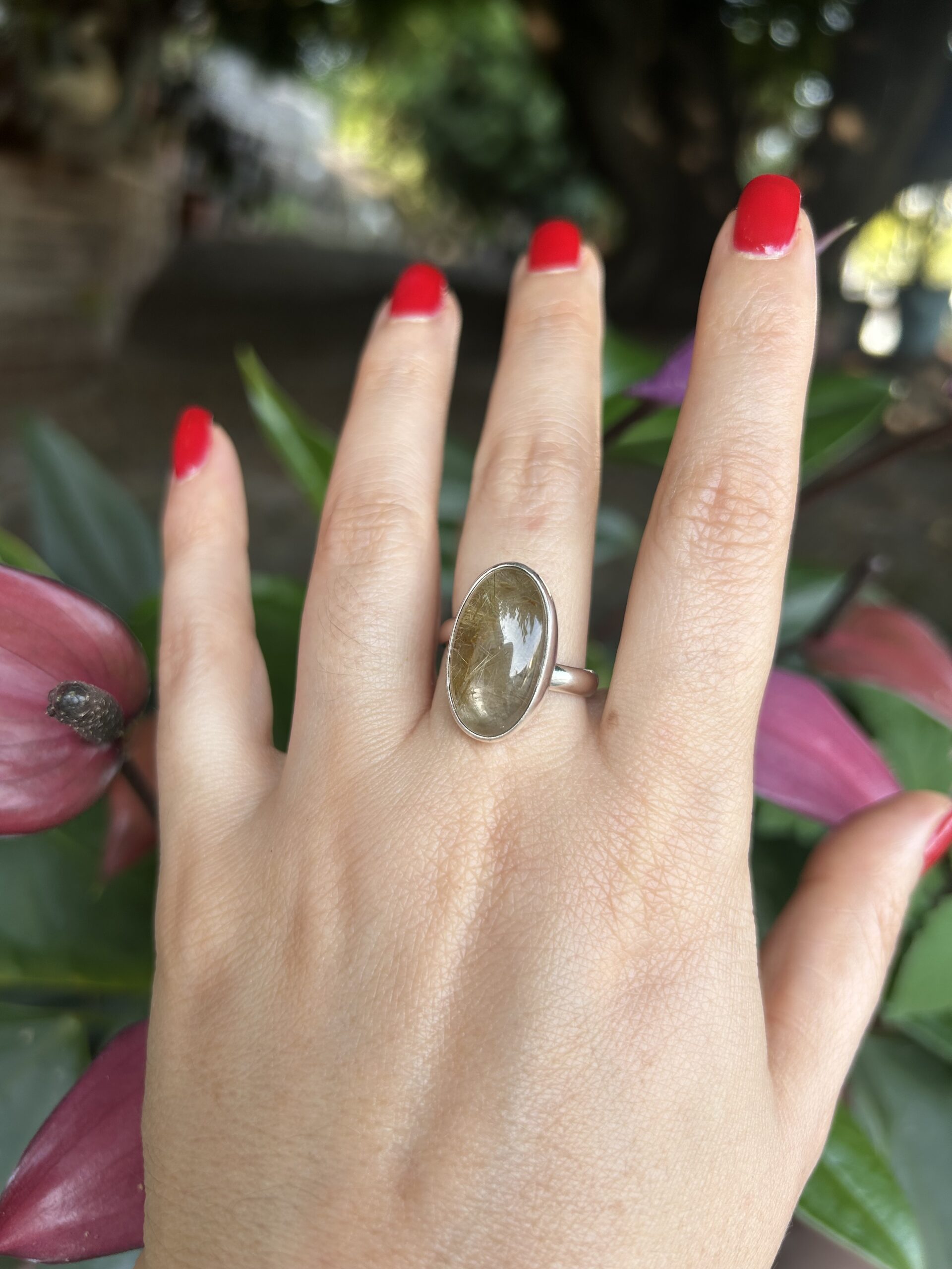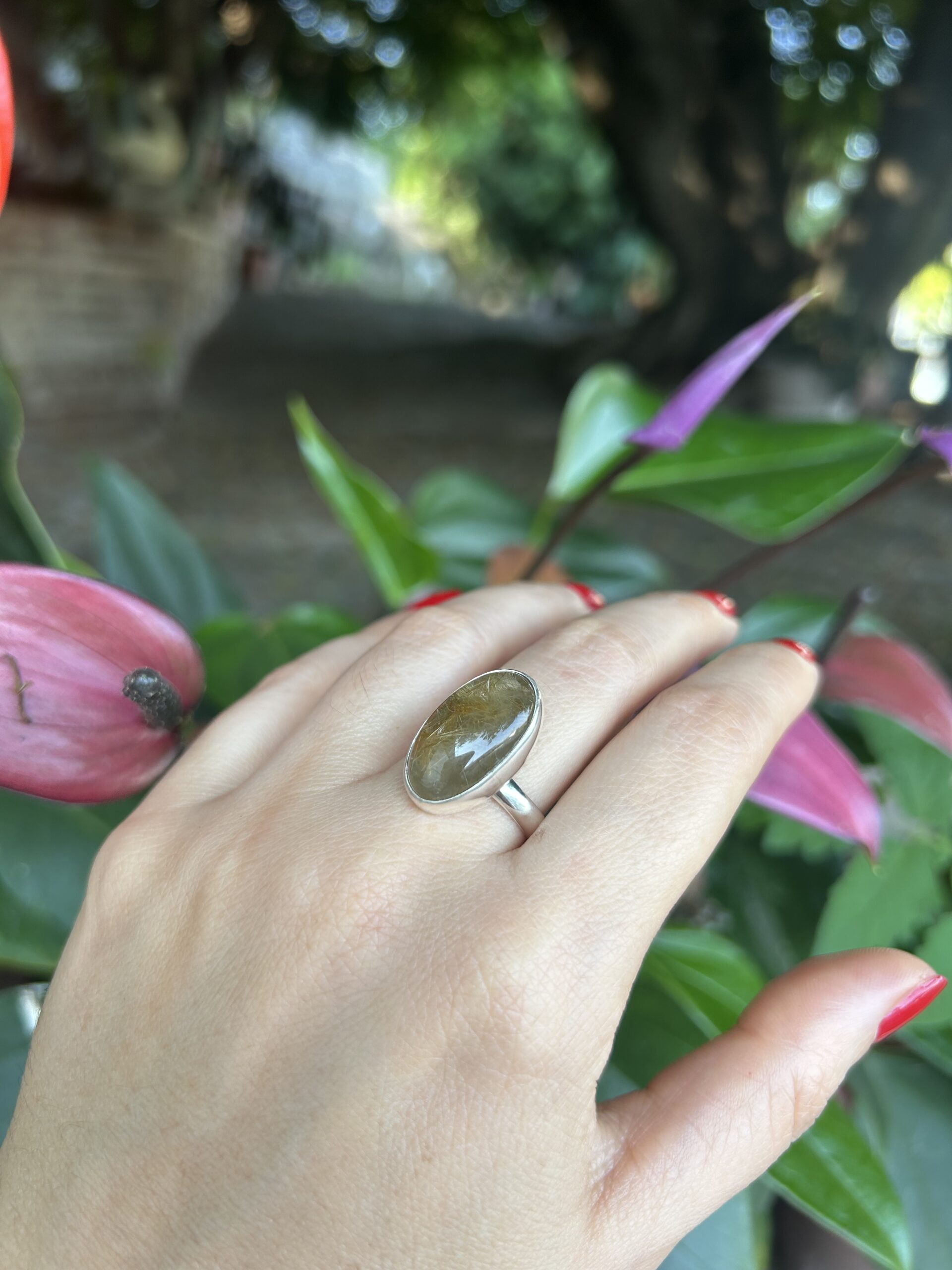Anillo Cuarzo Rutilado, de plata925, ajustable en medida