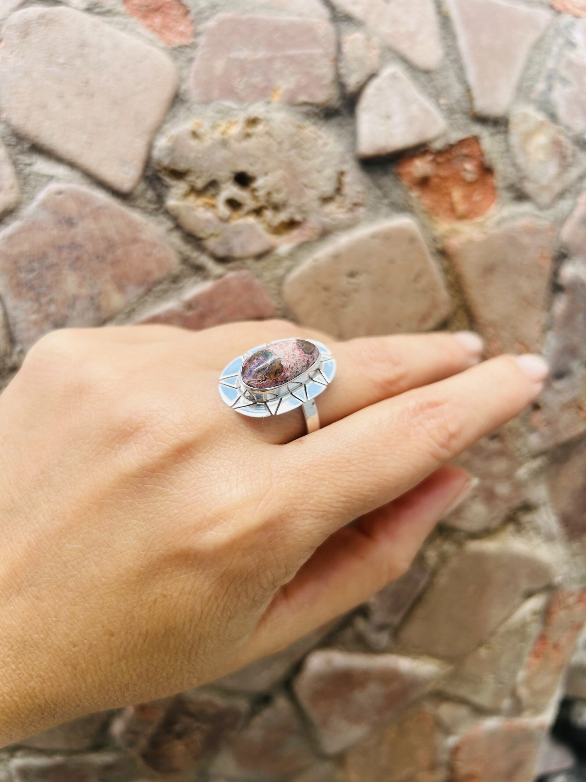 Anillo de Opalo natural con Diseño, de Plata925, ajustable en medida