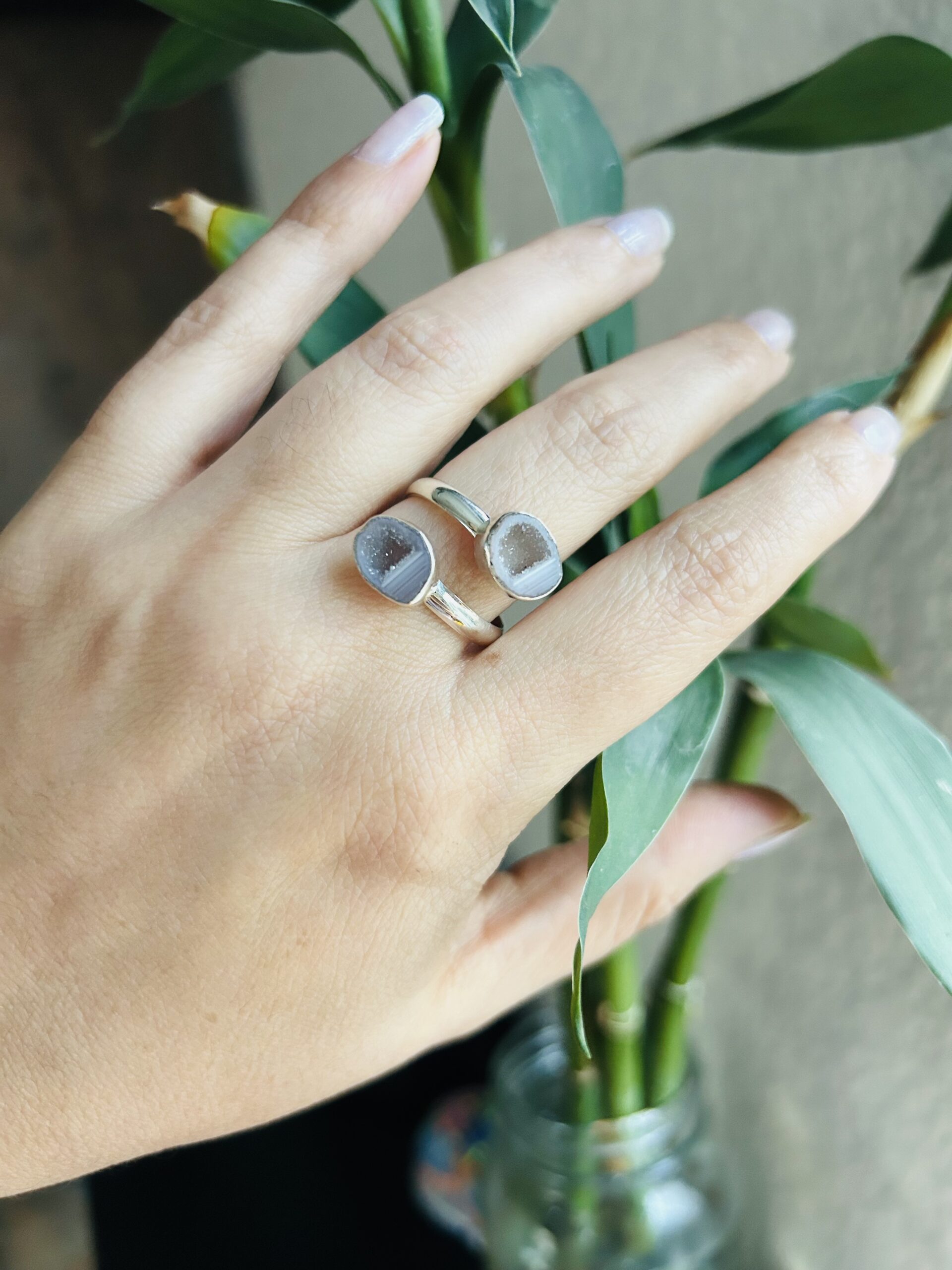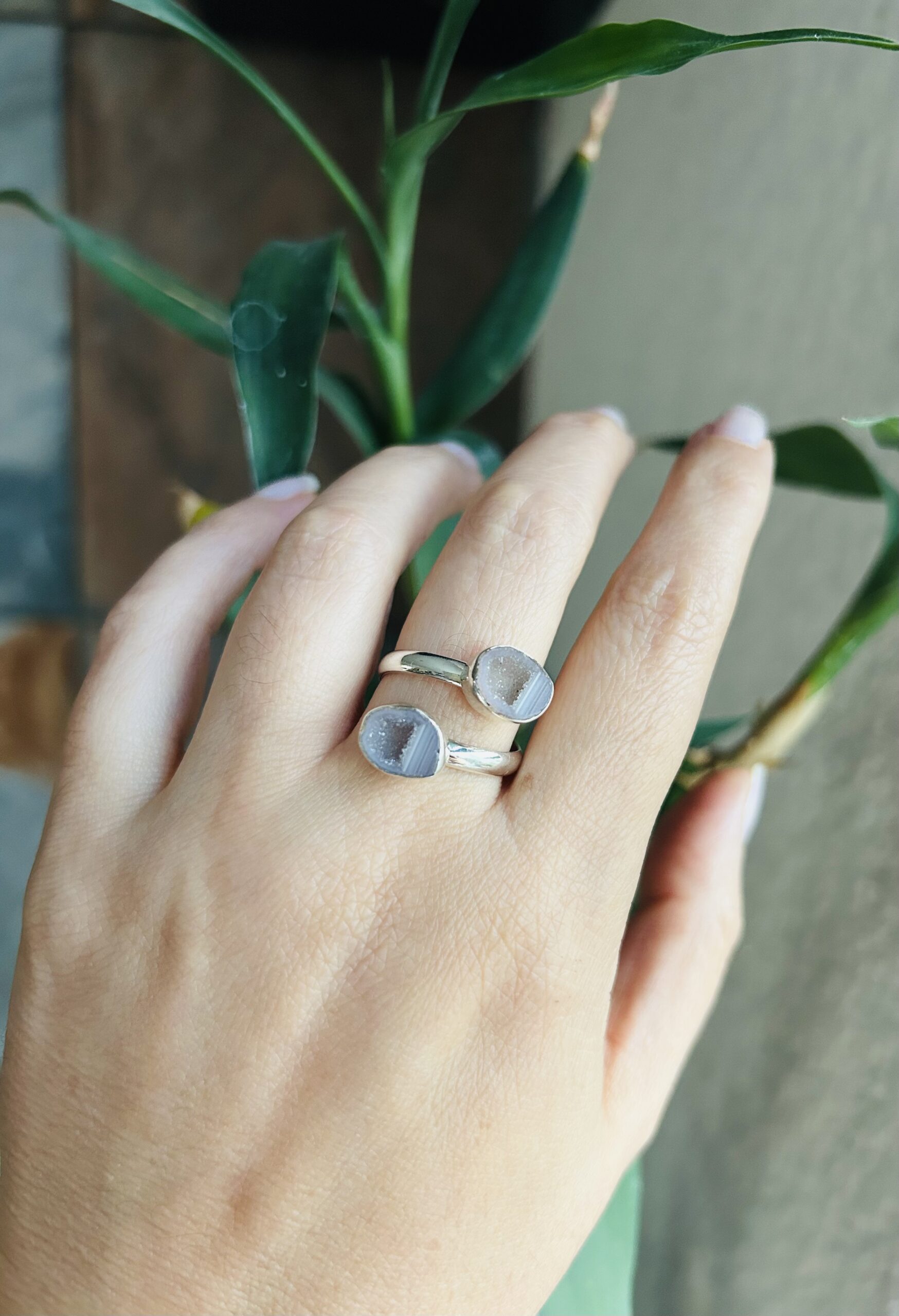 Anillo doble Geoidtas, de plata925, ajustable en medida