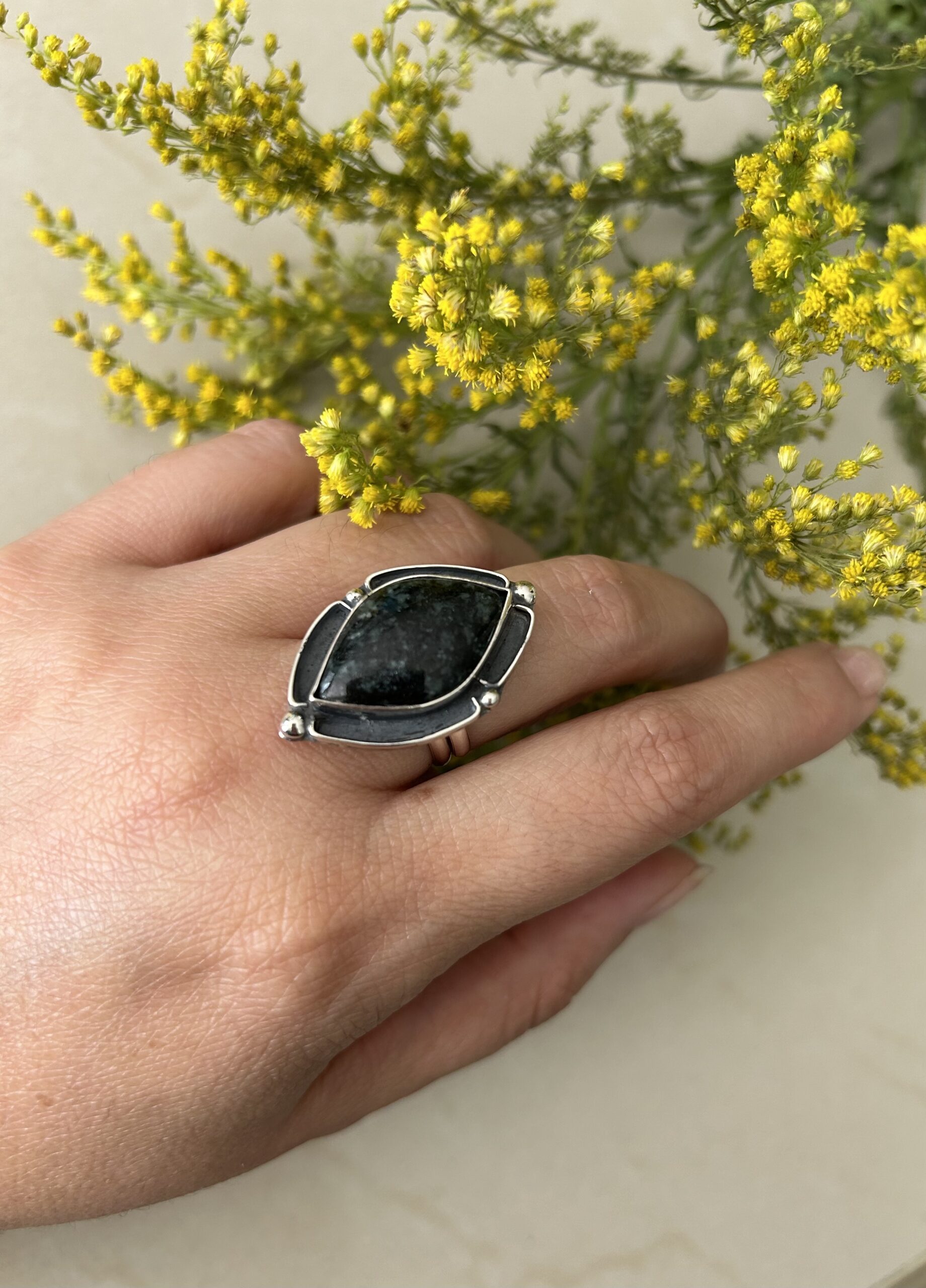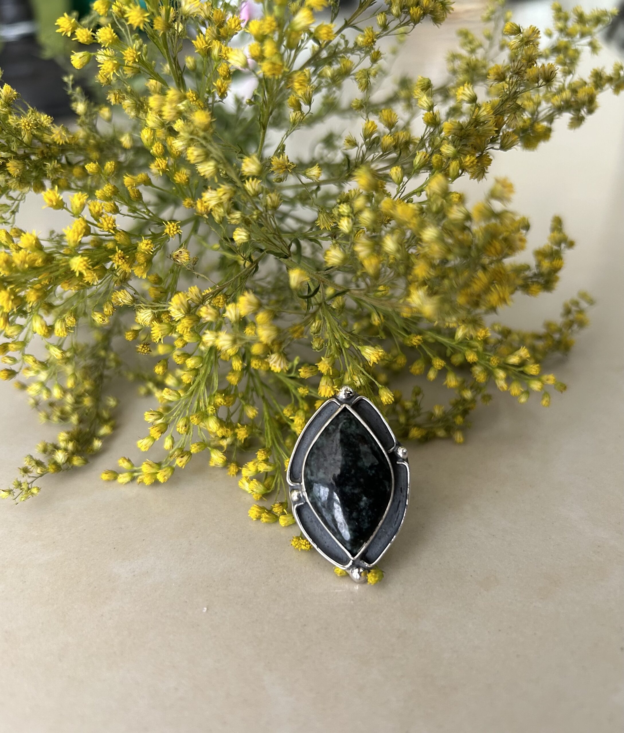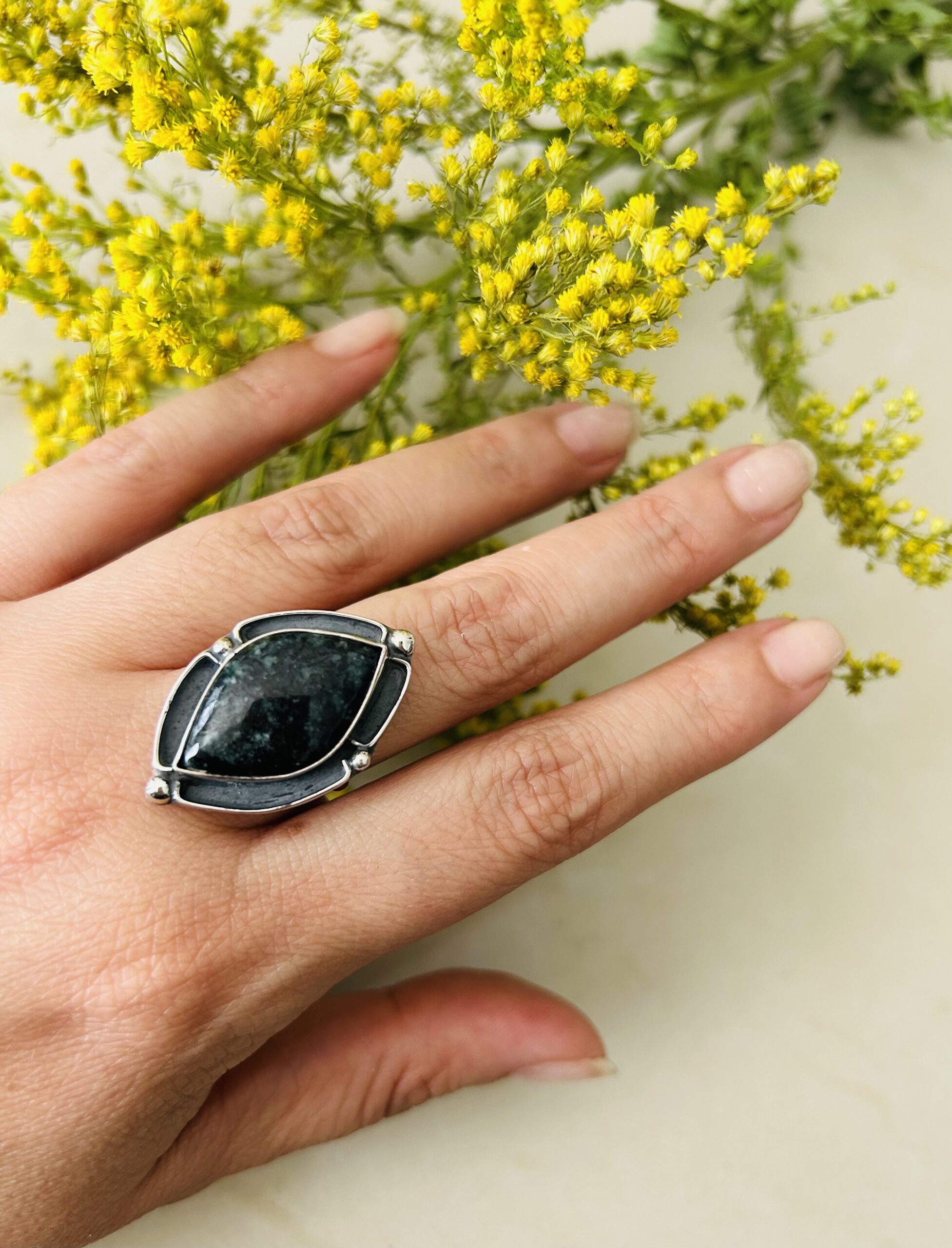 Anillo Jade con Diseño, de plata925, ajustable en medida