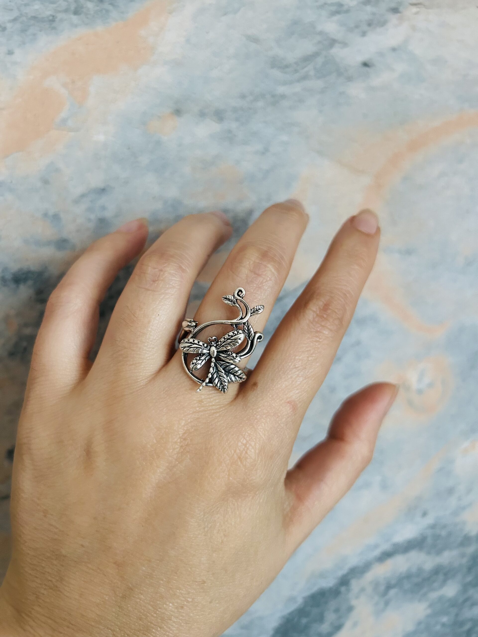 Anillo LIBELULA volando, detalle en diseño, de Plata925
