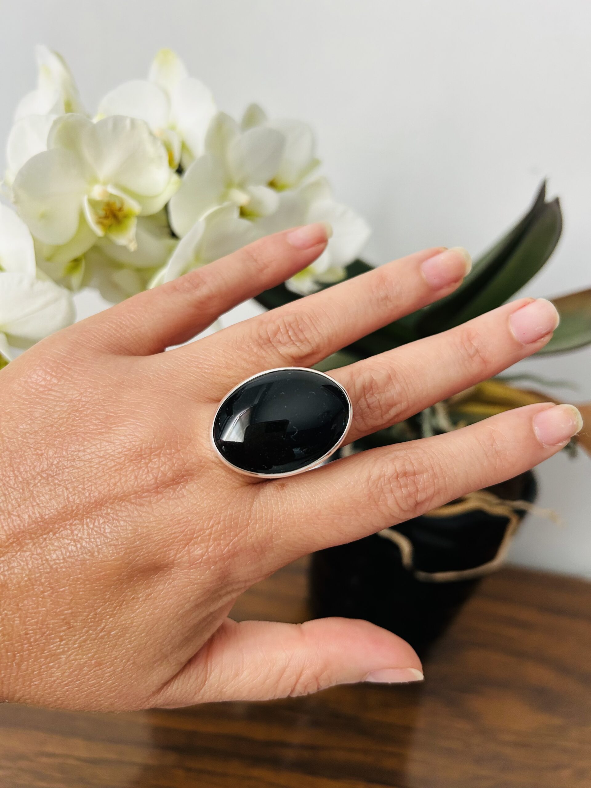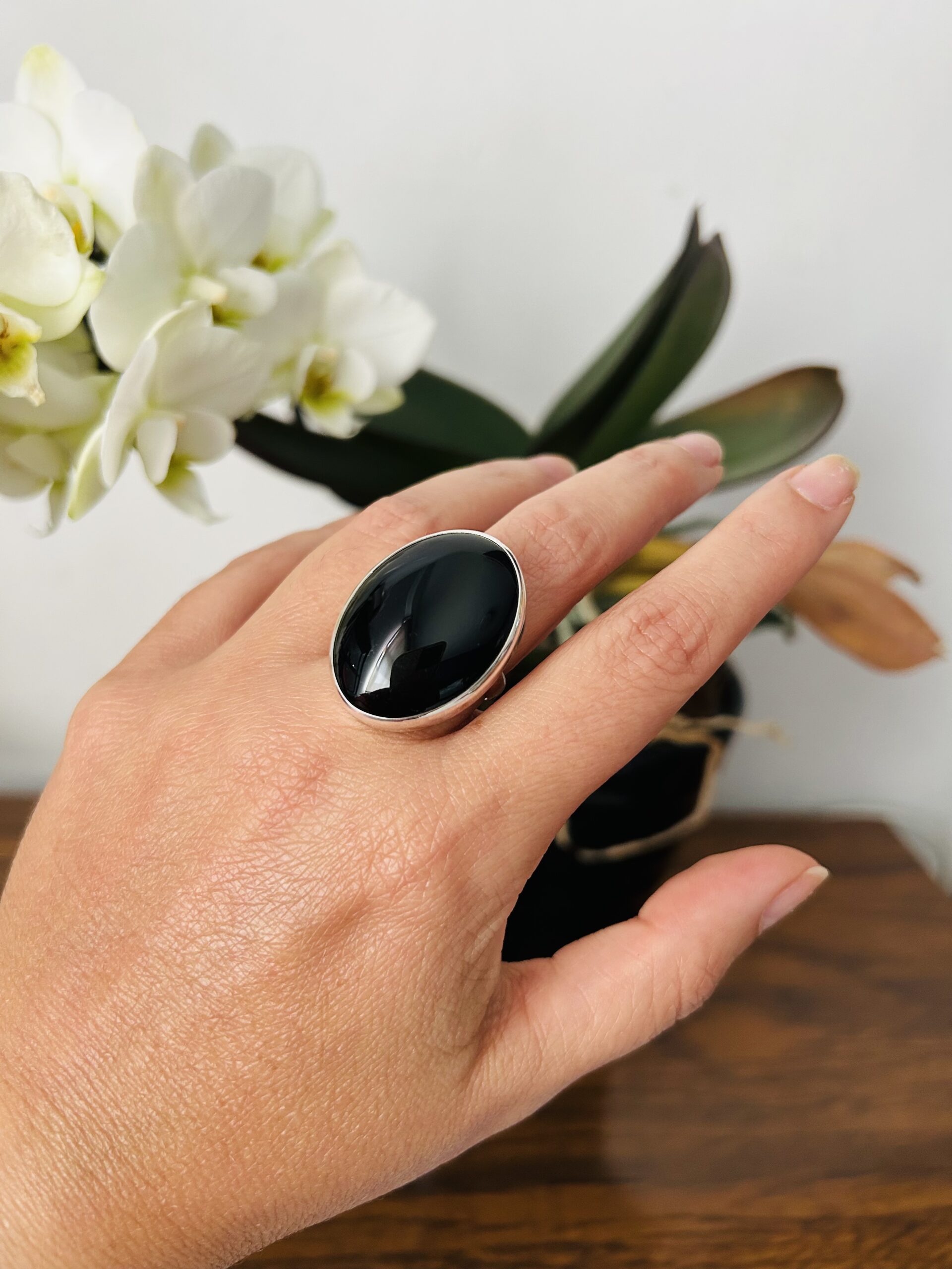 Anillo con Onix Pulido, de Plata925, ajustable en medida