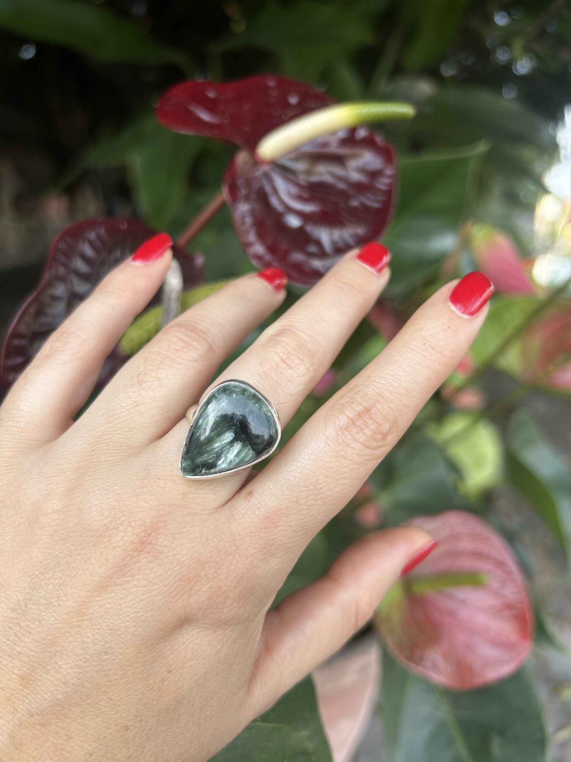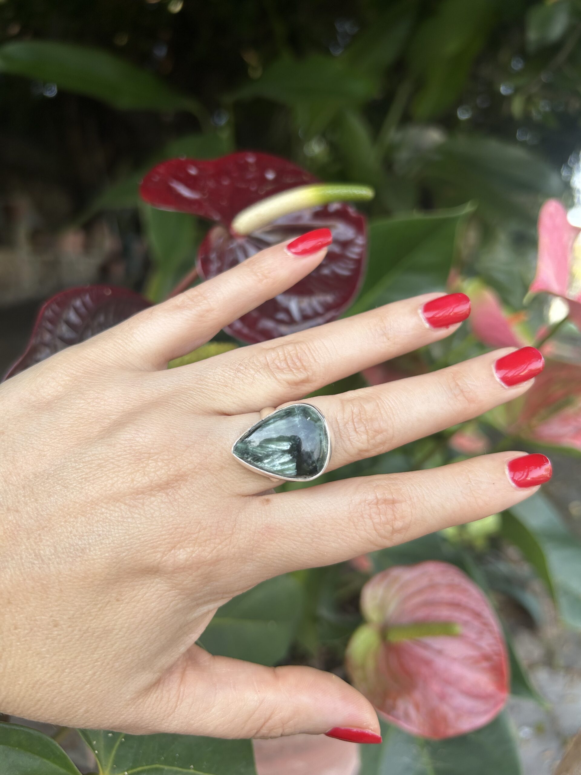 Anillo Serafinita, de plata925, ajustable en medida