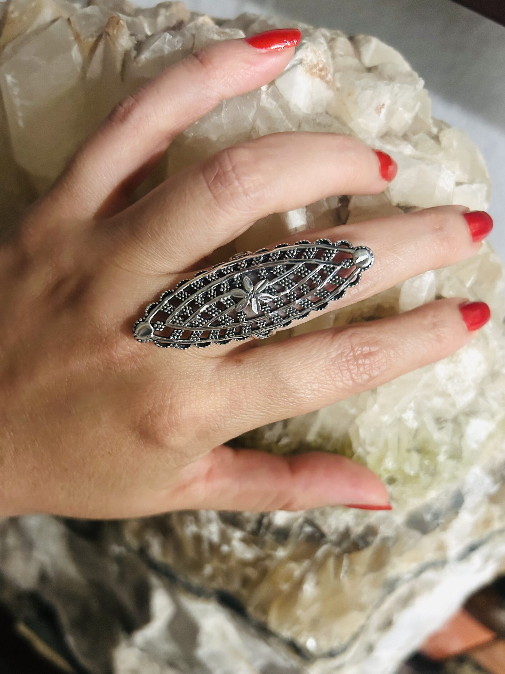Anillo SIKA, trabajo artesanal detallado, de colección plata Solida , todo de plata925