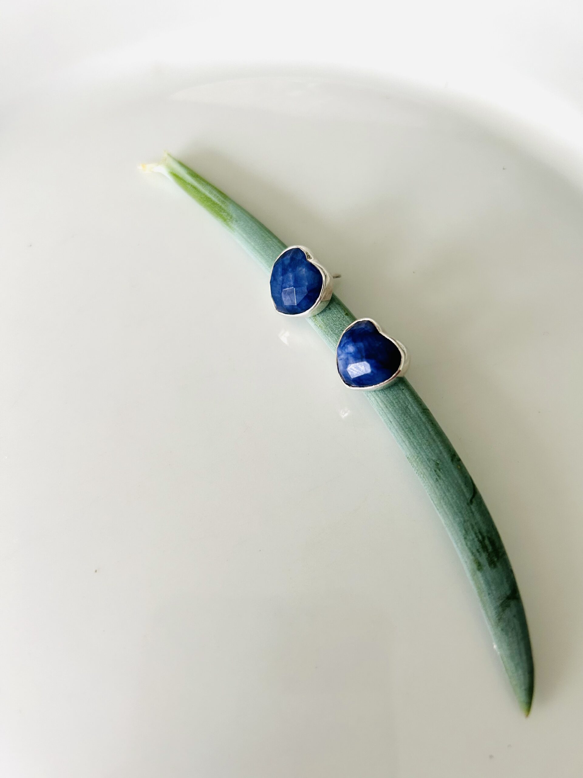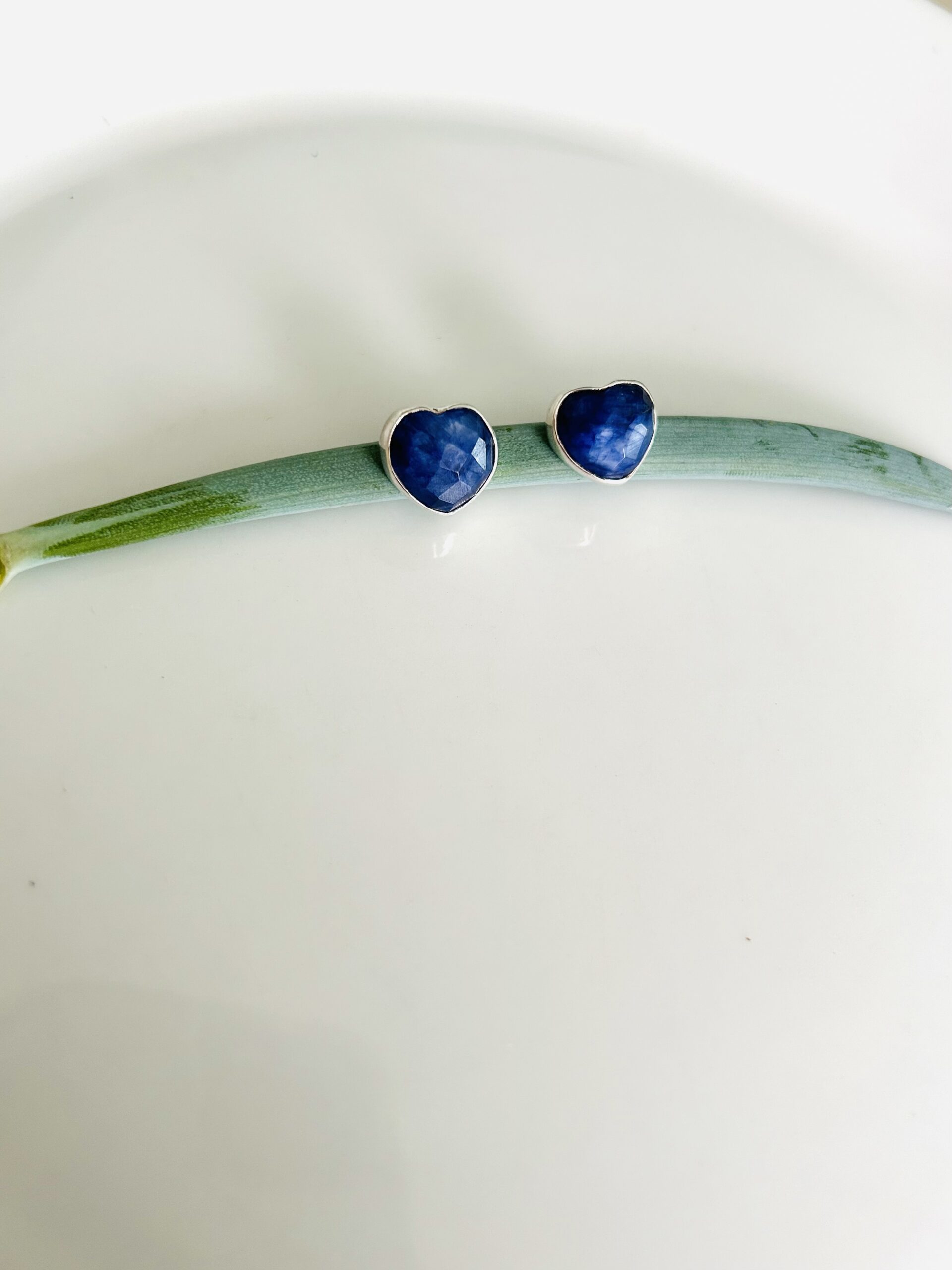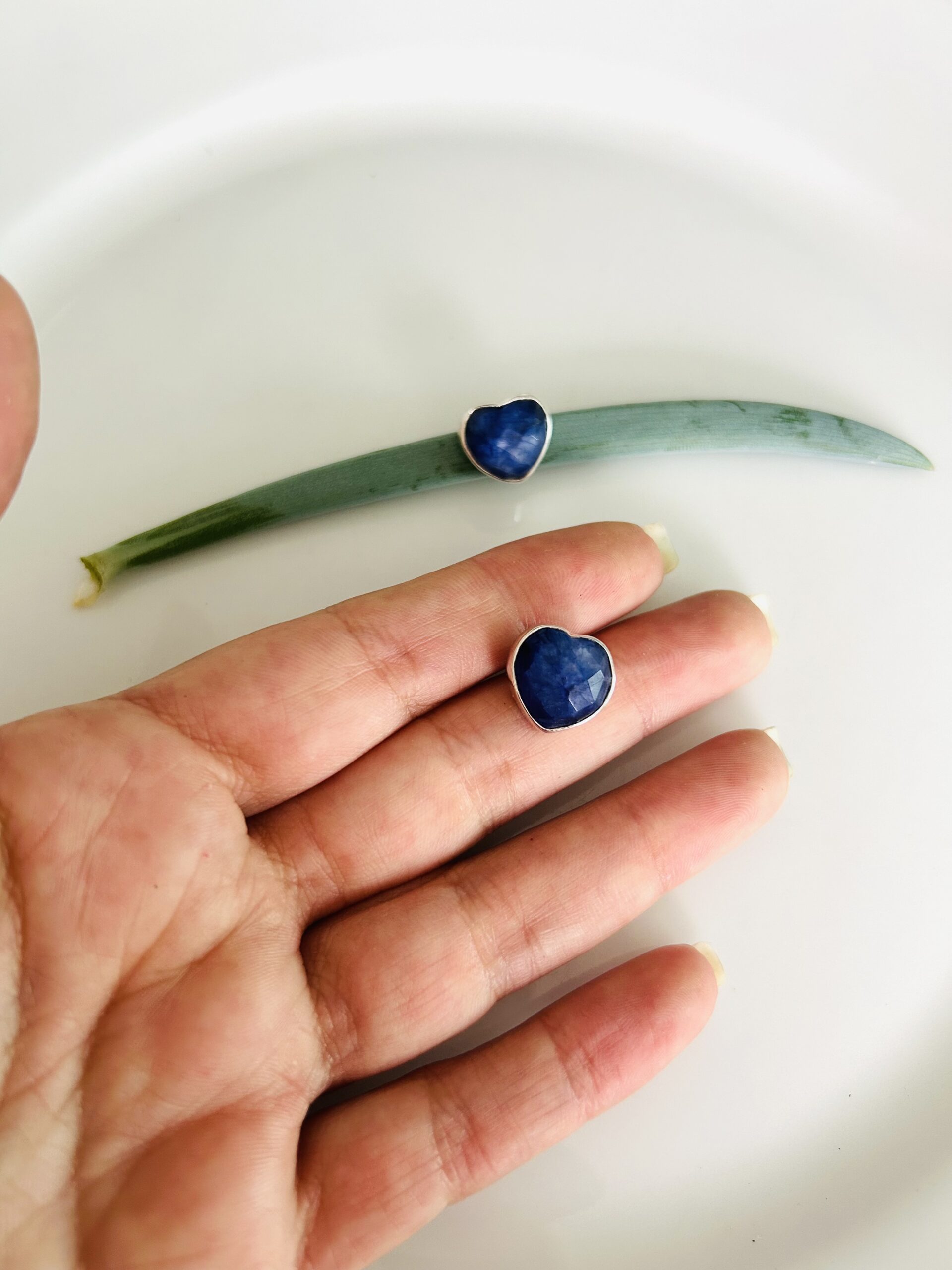 Aretes Corazón de Zafiro de poste, para toda ocasión, de plata925