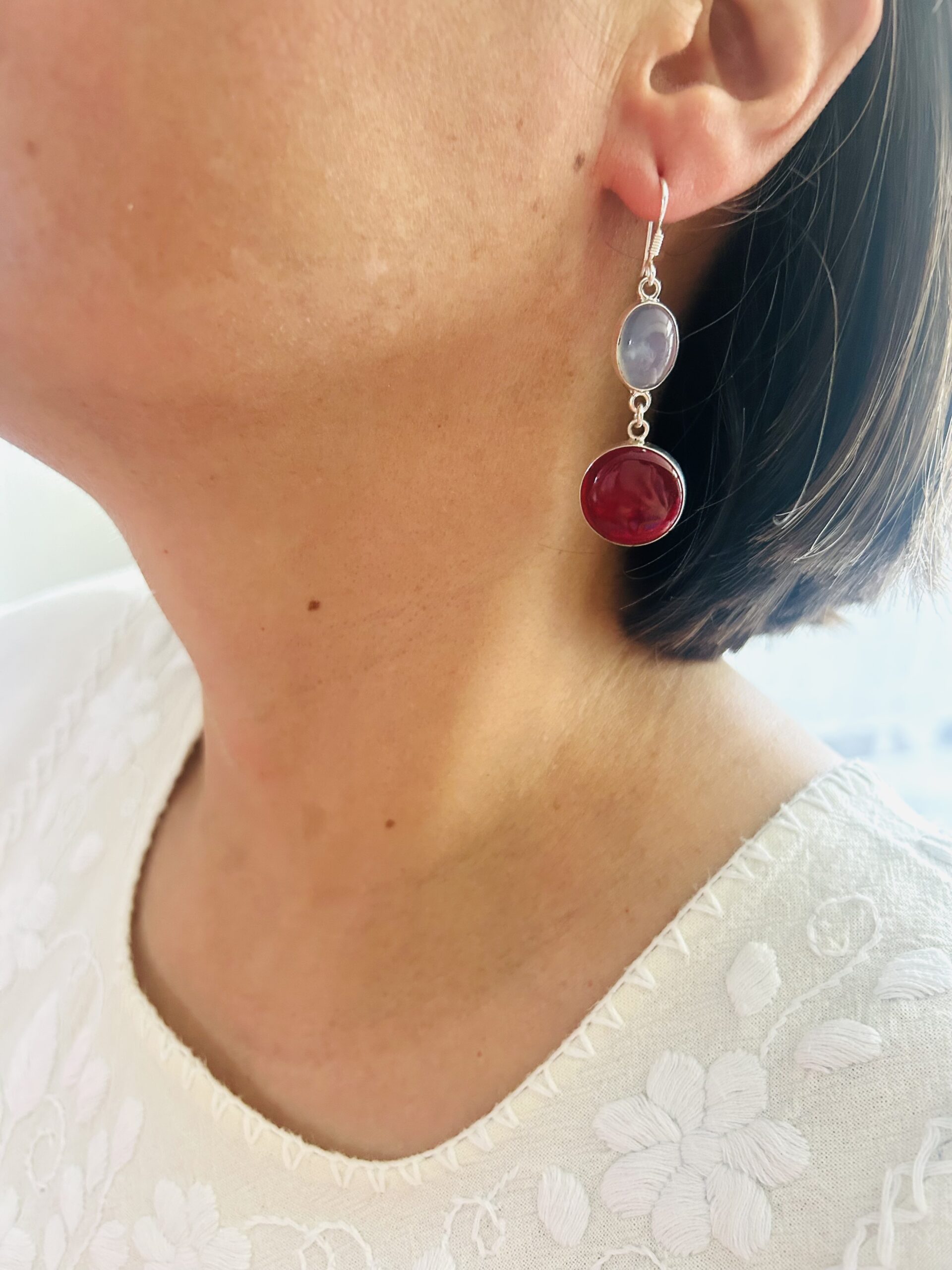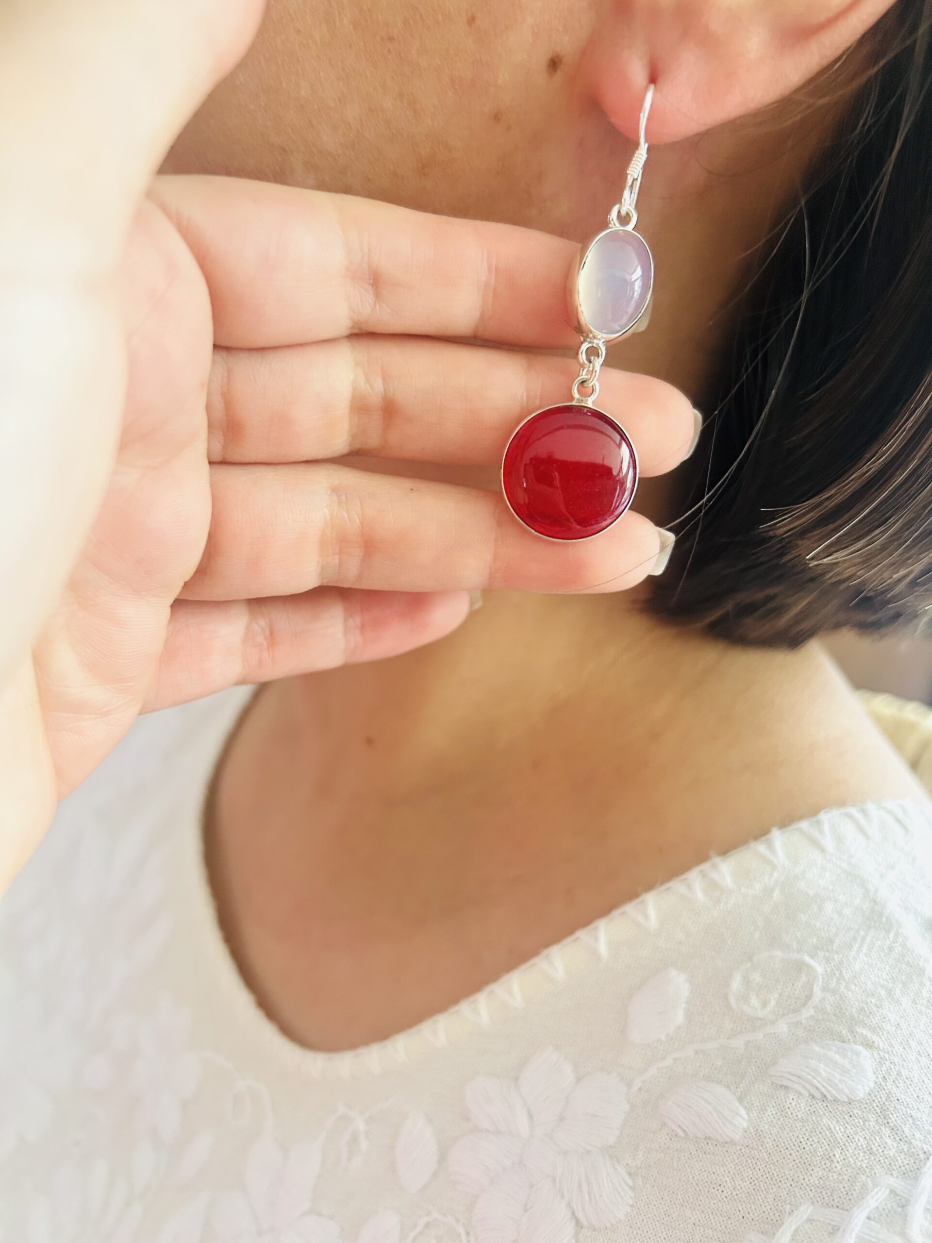 Aretes Dobles colgantes con Agatas y Cornalinas, son de plata925, (se adjunta foto de como lucen puestos)