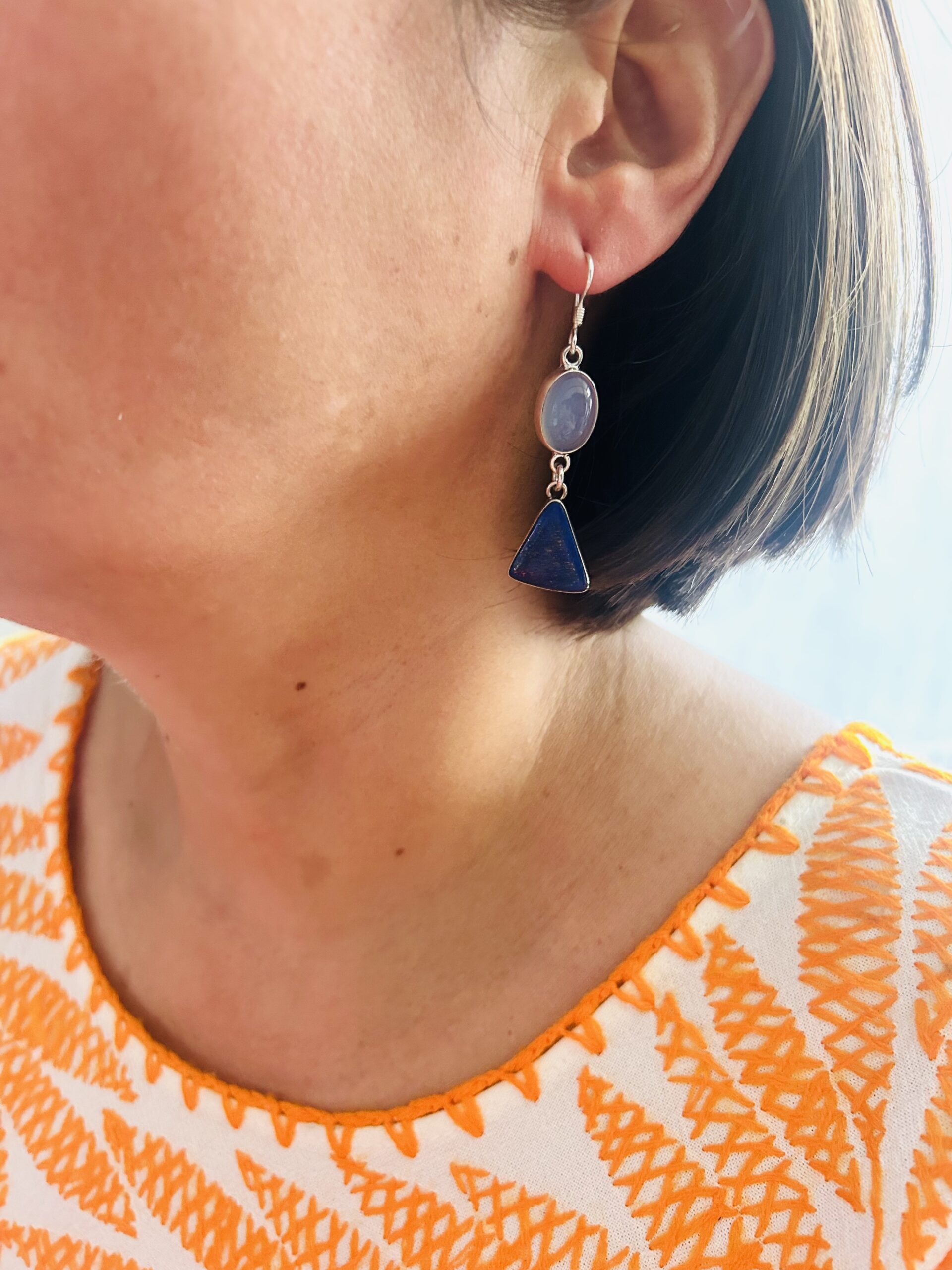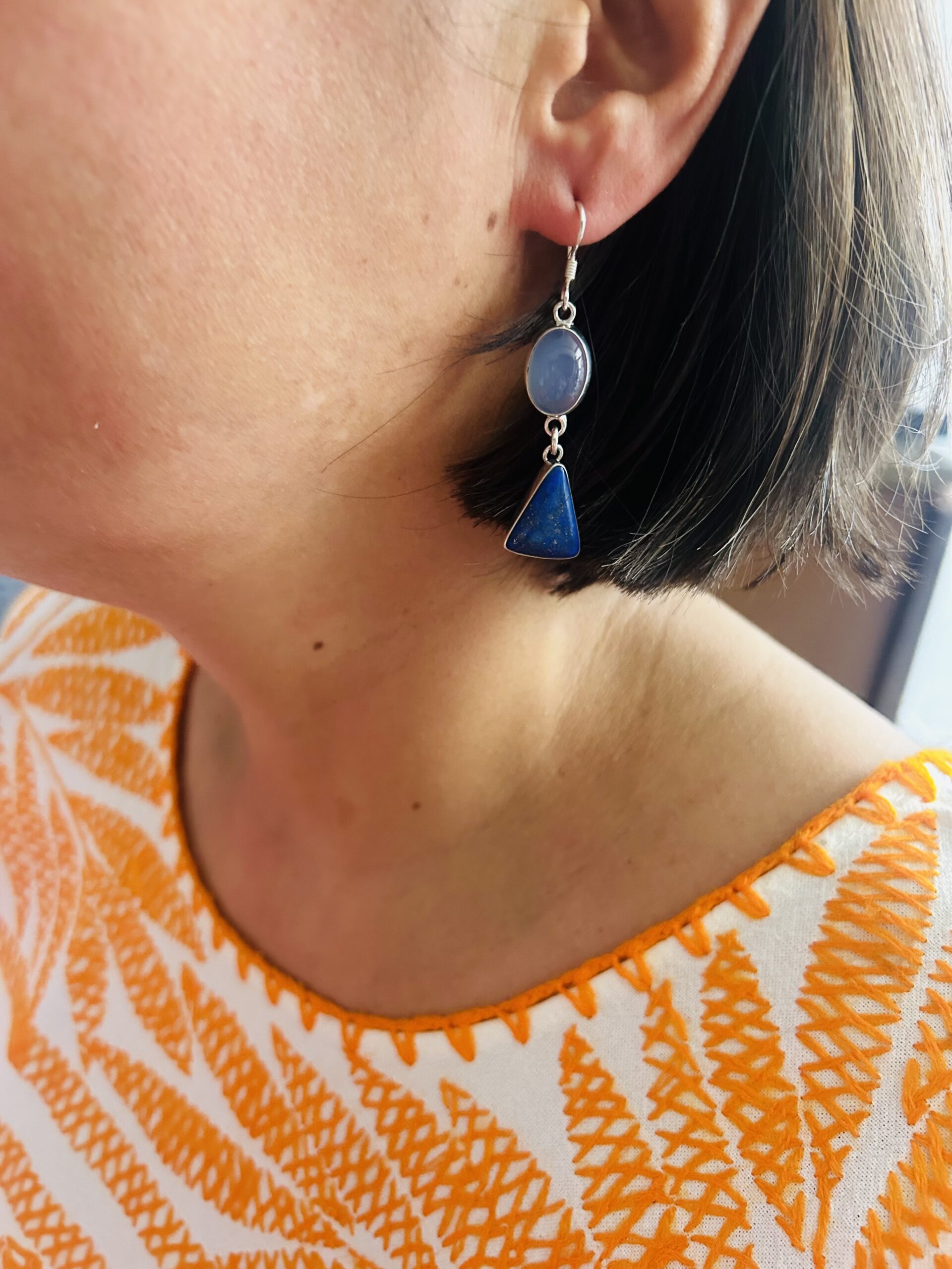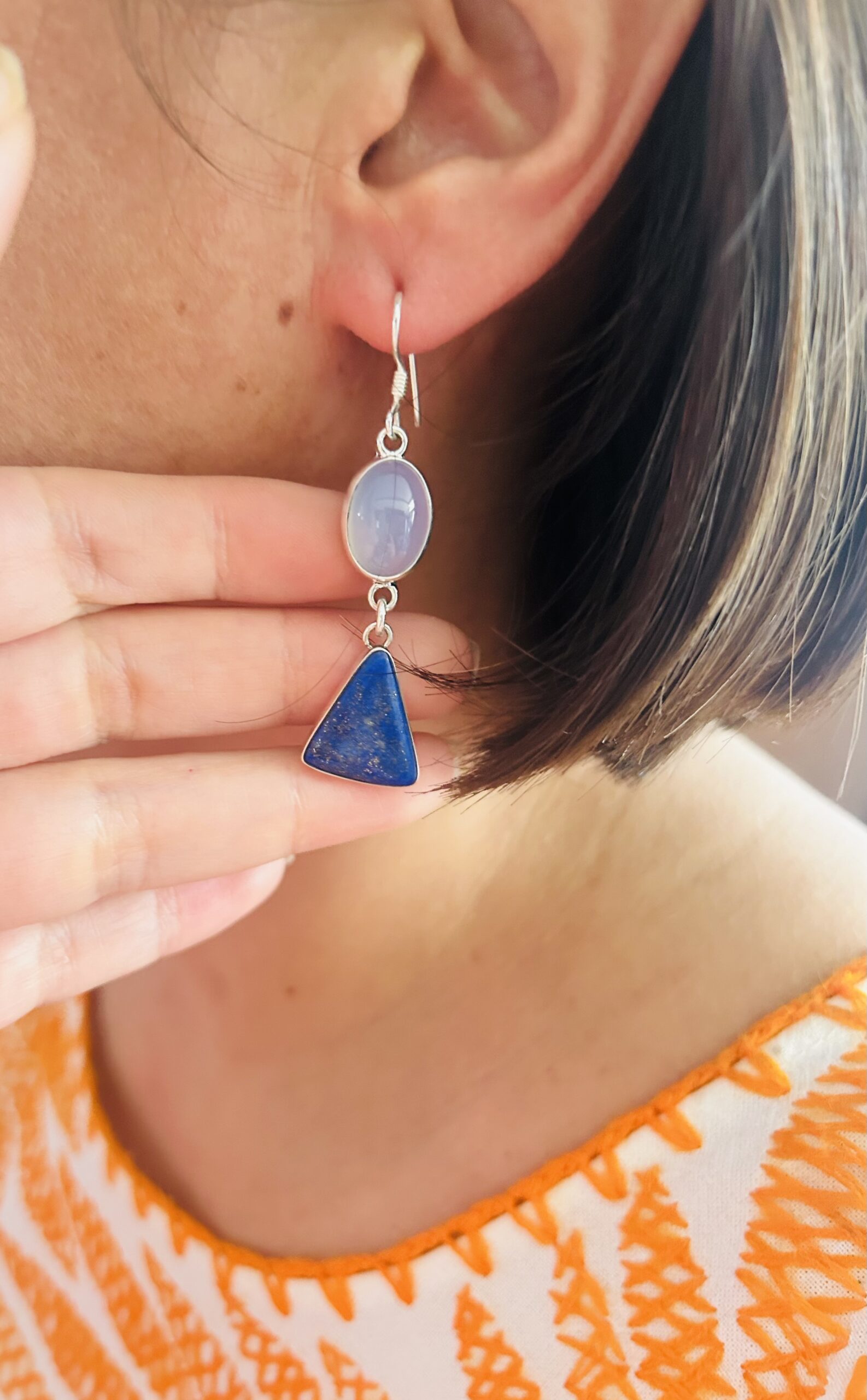 Aretes Dobles colgantes con Agata y Lapislazulli , son de plata925, (se adjunta foto de como lucen puestos)