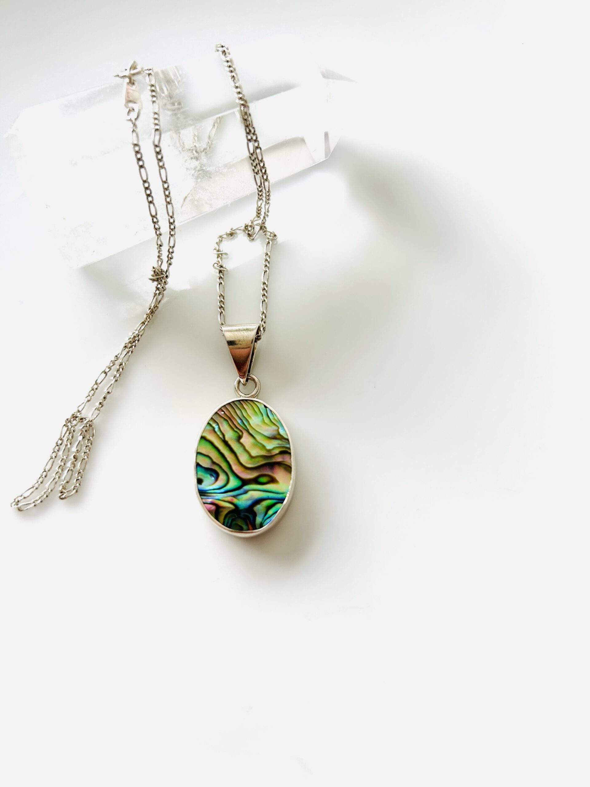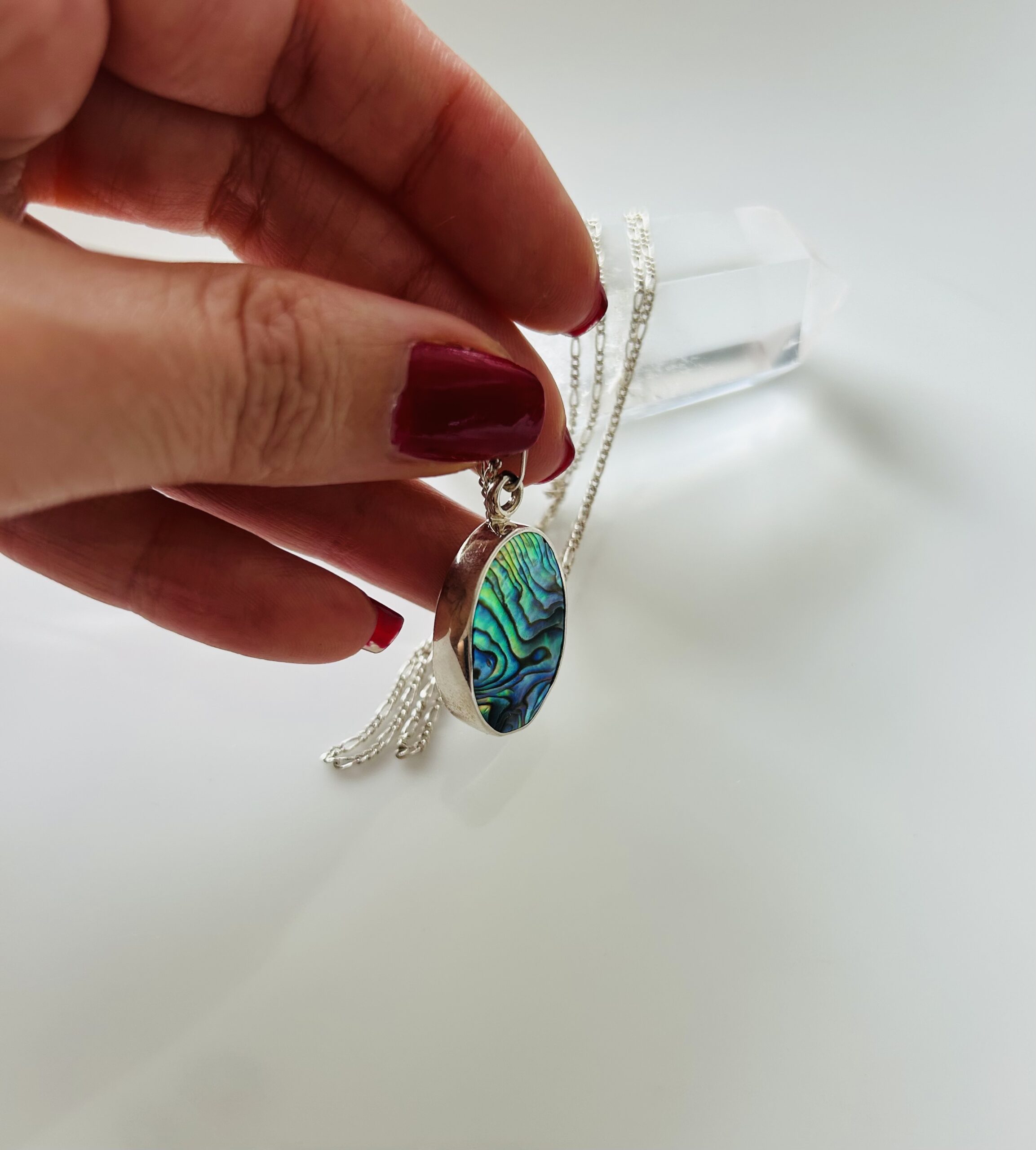 Collar con dije de Concha de Abulon, incluye Cadena (55 cm), todo es de platasolida 925.