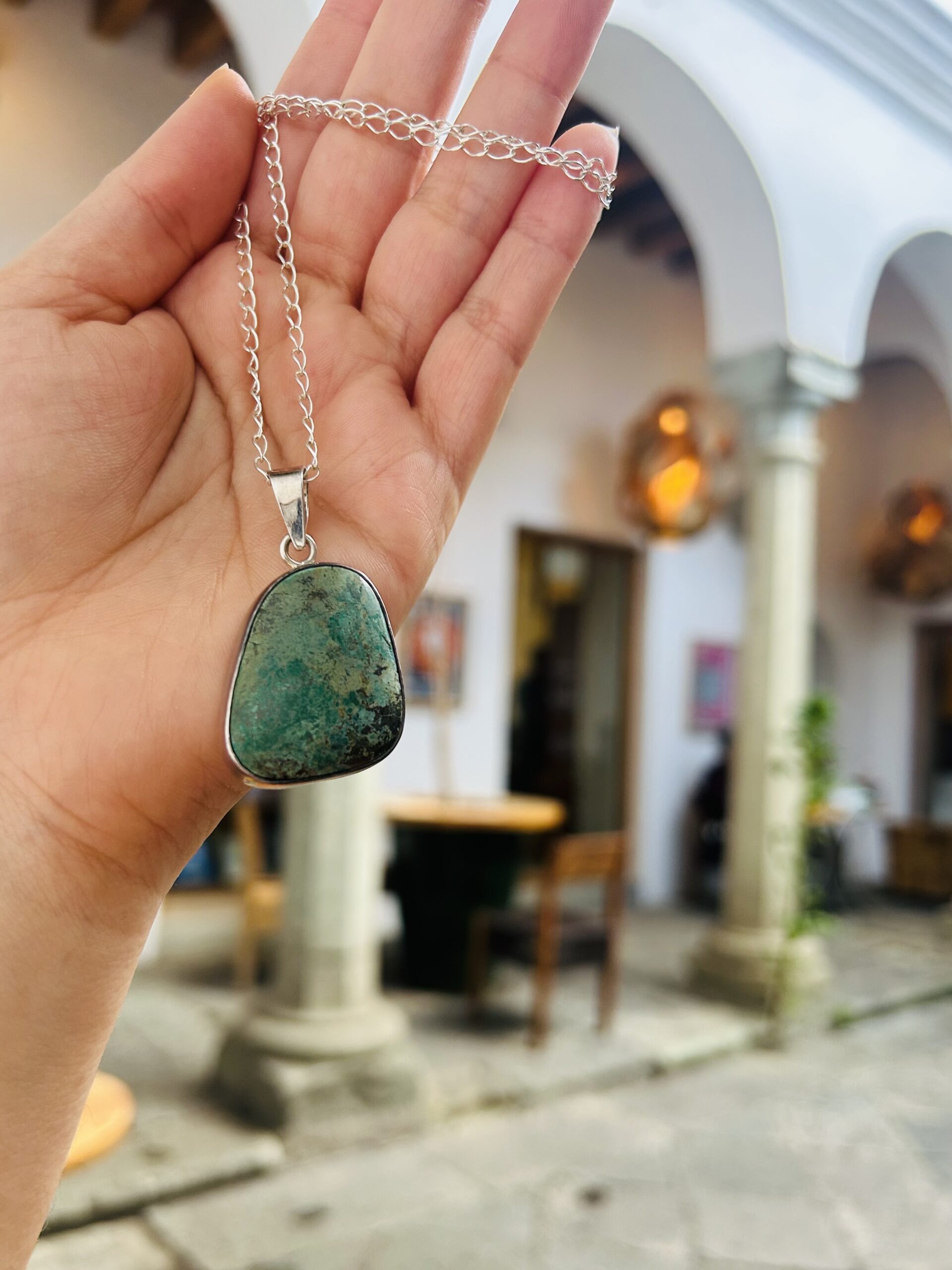 Collar con Turquesa, incluye Cadena (55 cm), todo es de plata925.