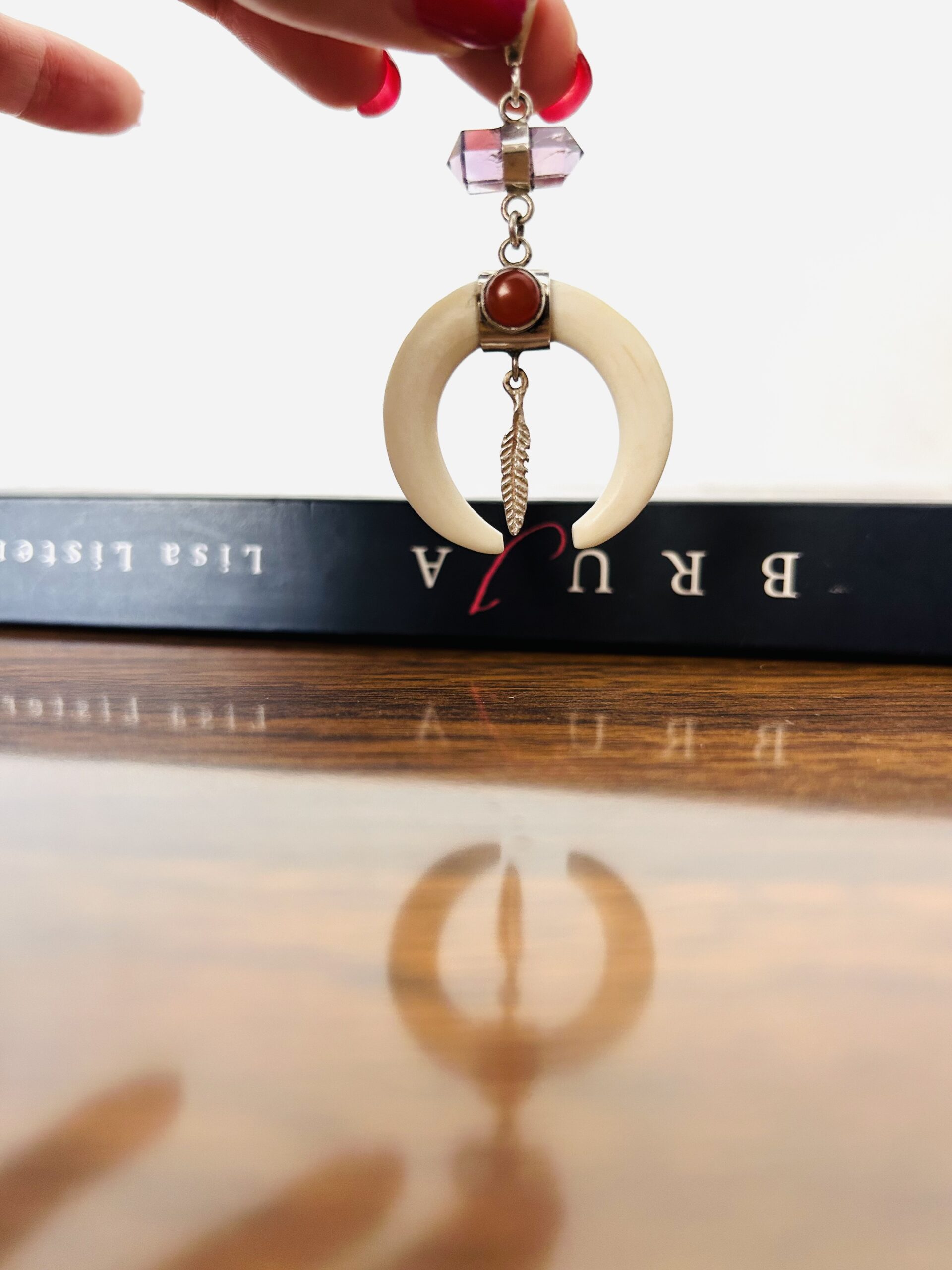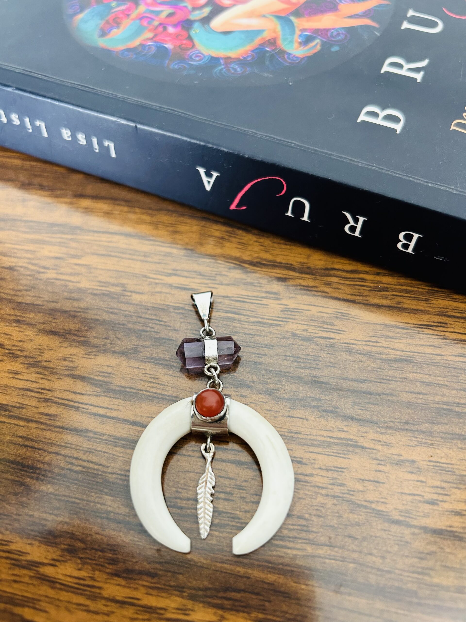 Dije Puntas de Amatista y Luna con agata y plumita
